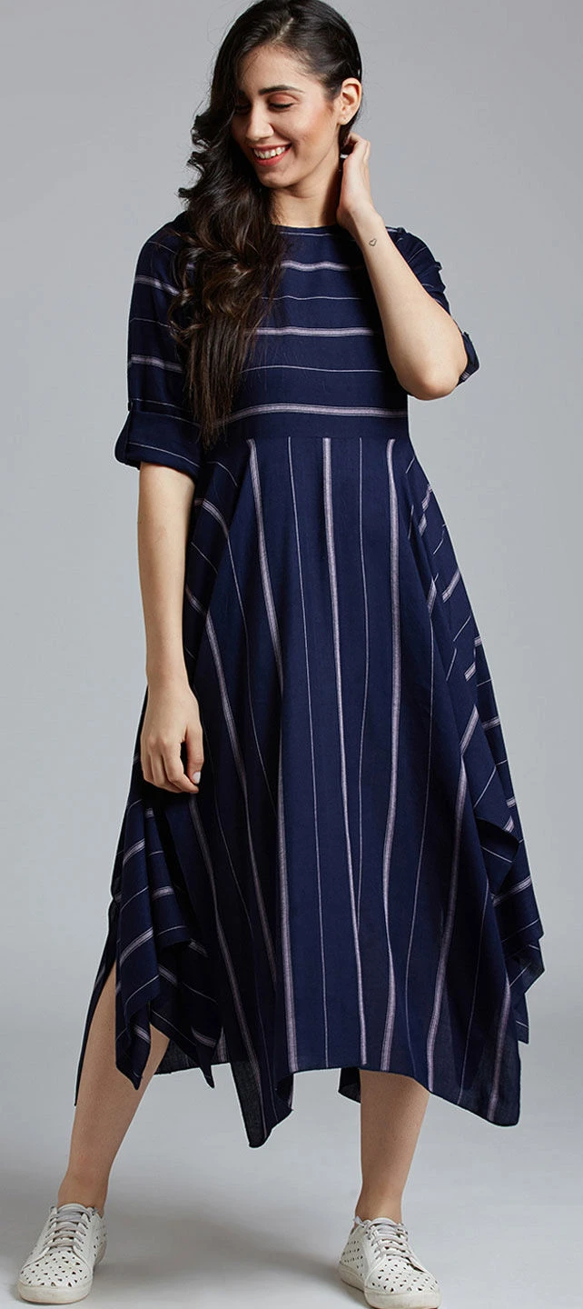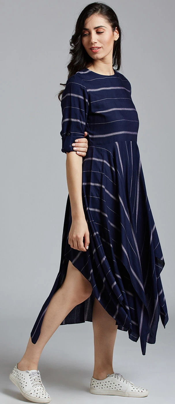 Blue color Dress in Blended Cotton fabric with Printed work