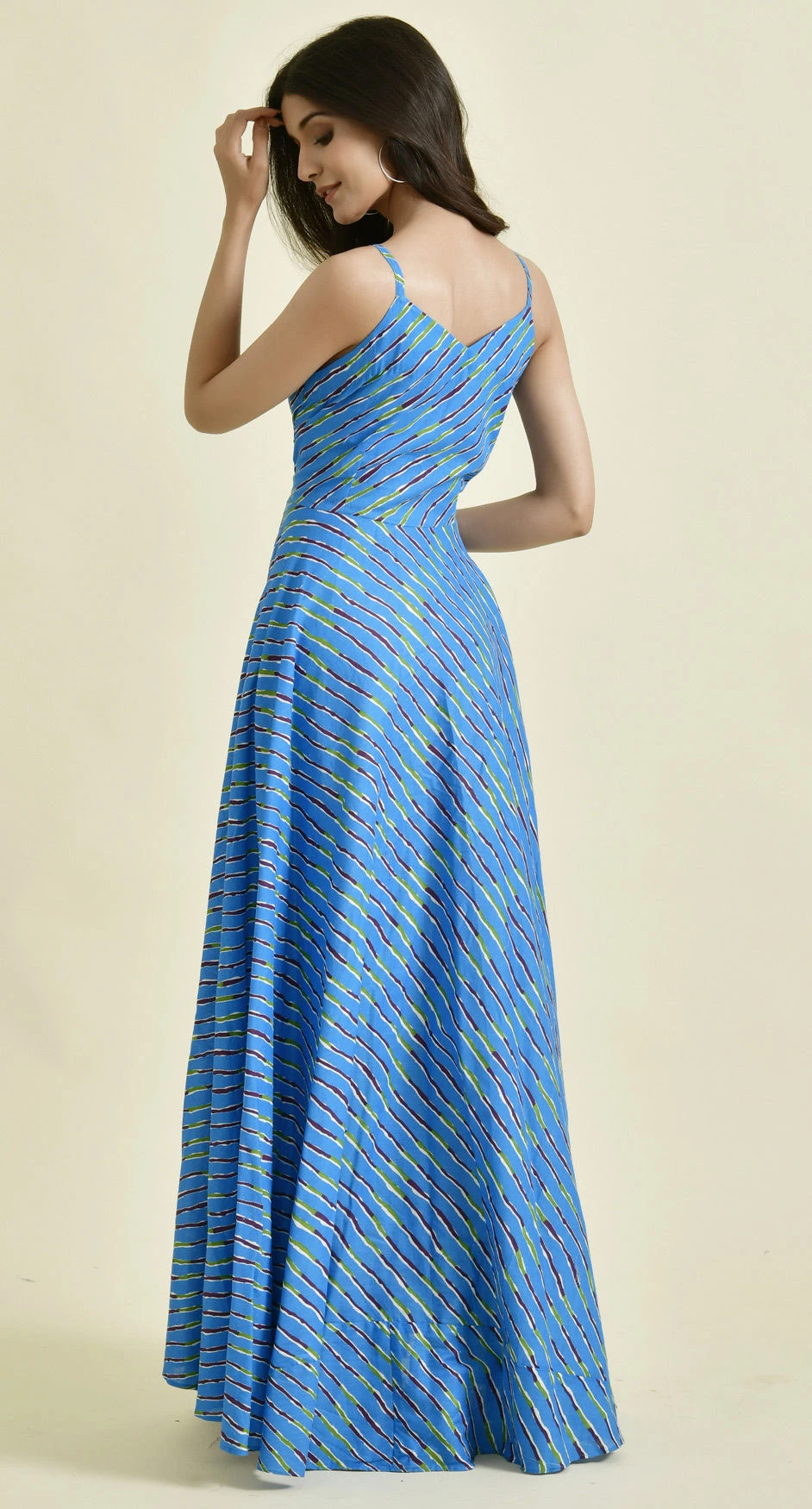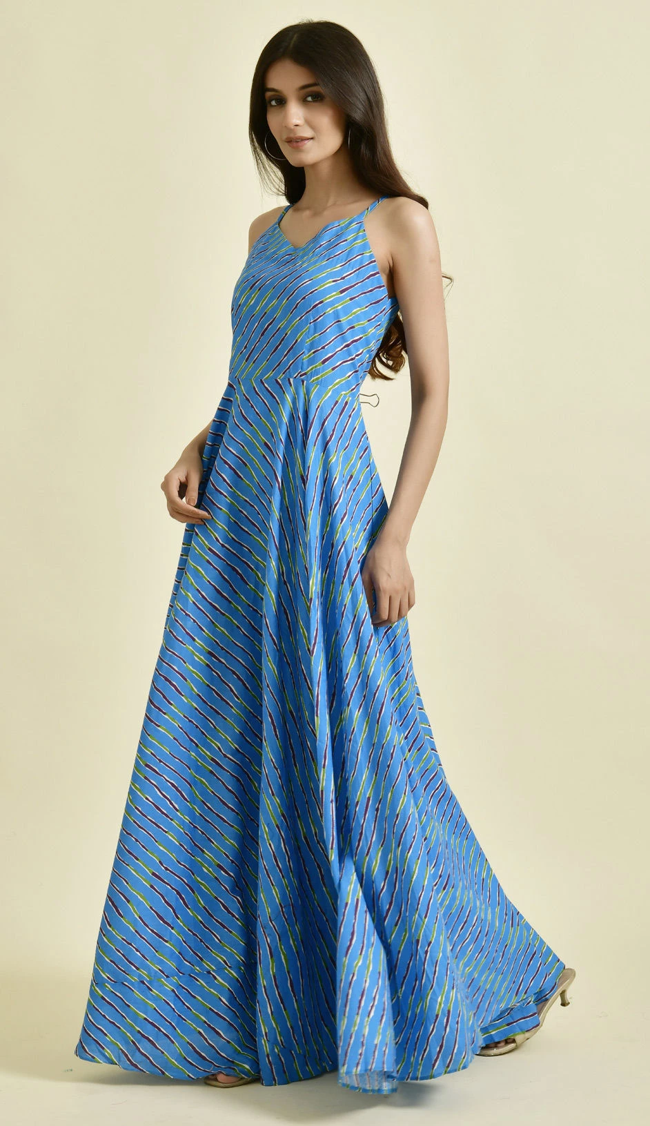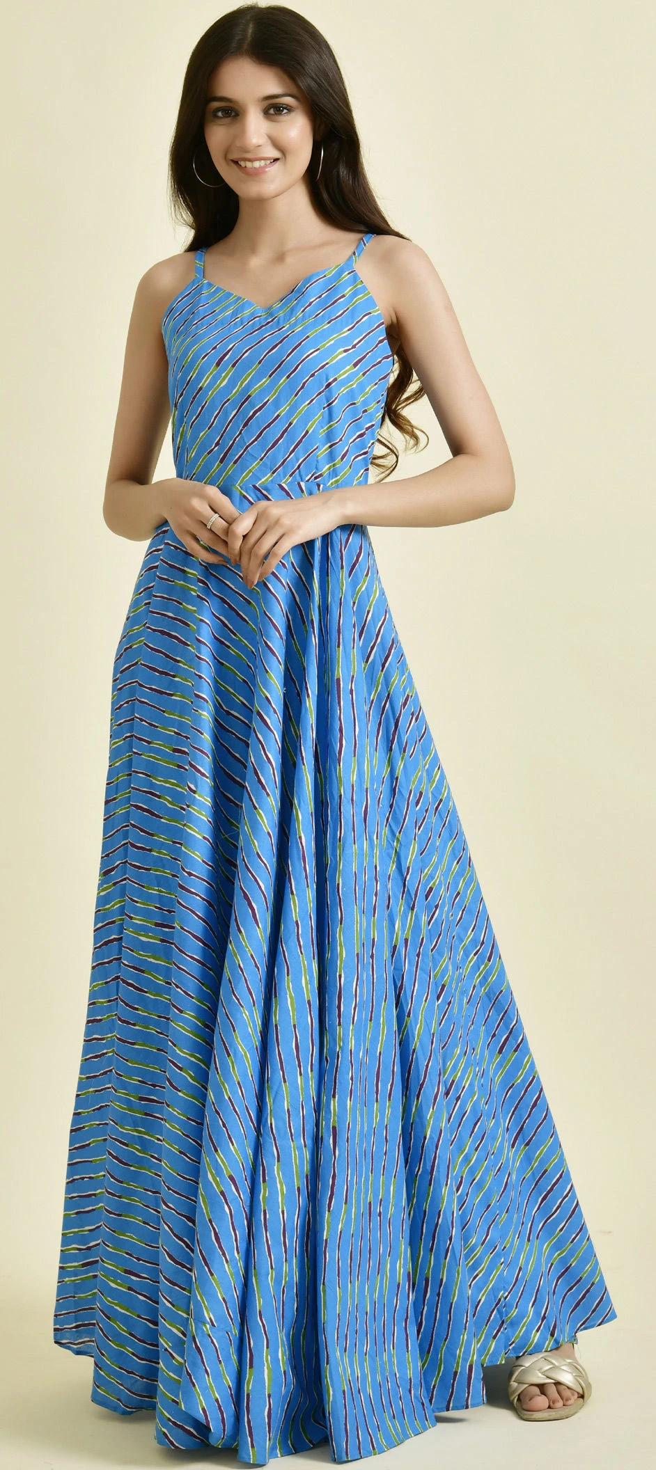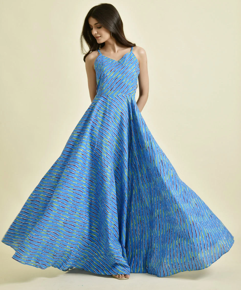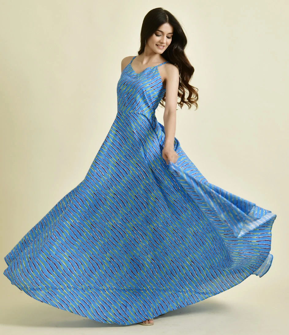 Blue color Dress in Cotton fabric with Lehariya, Printed work