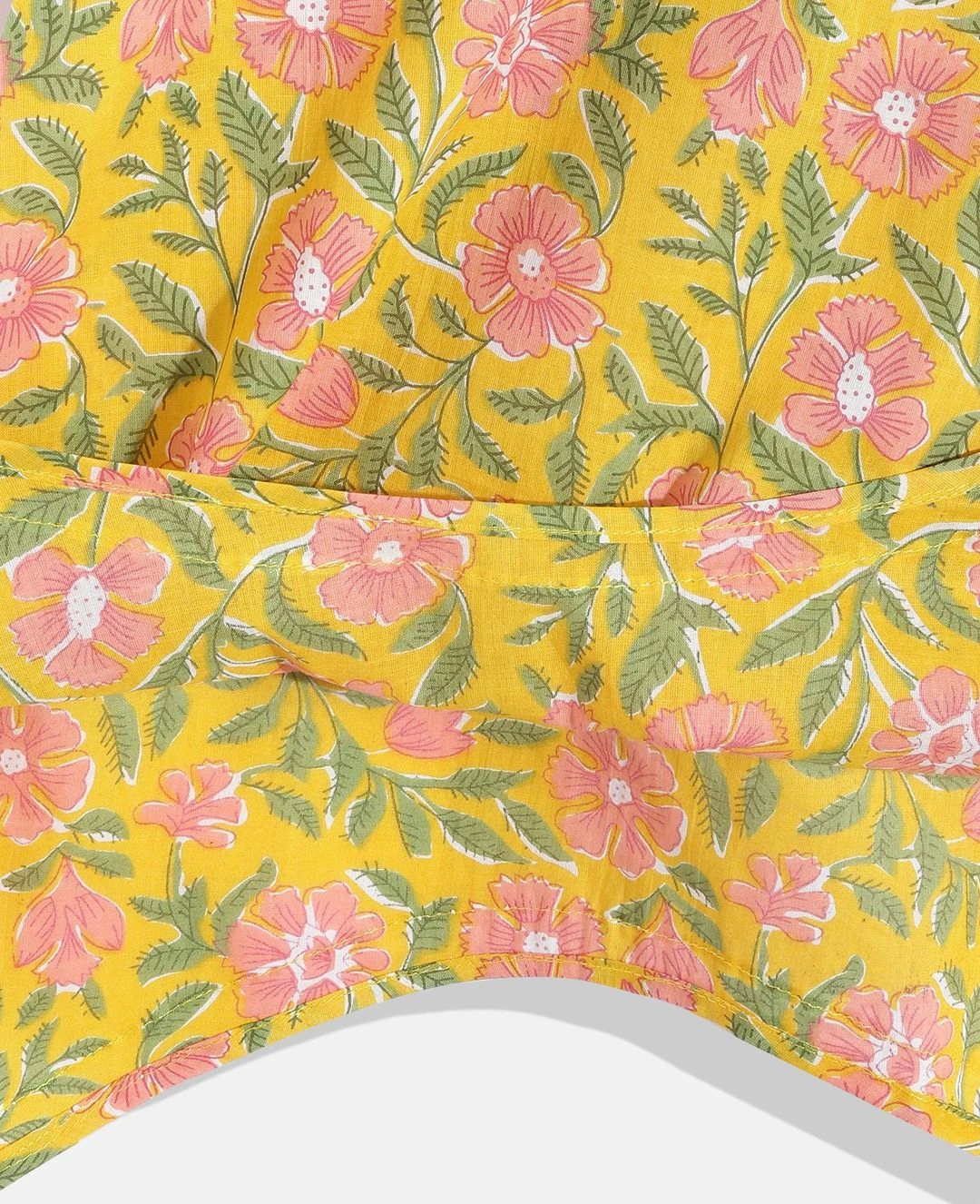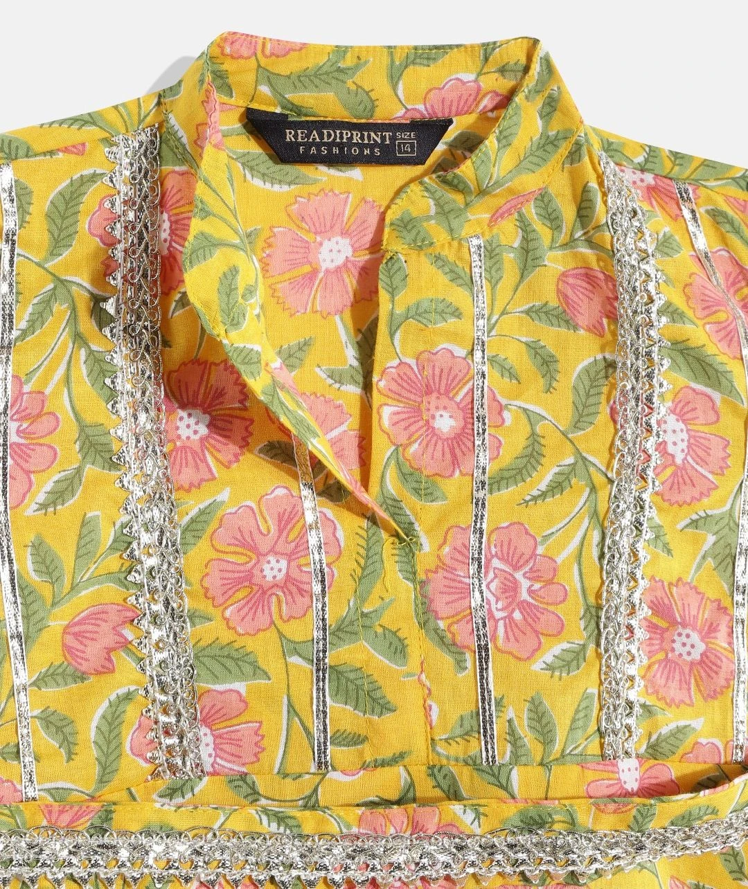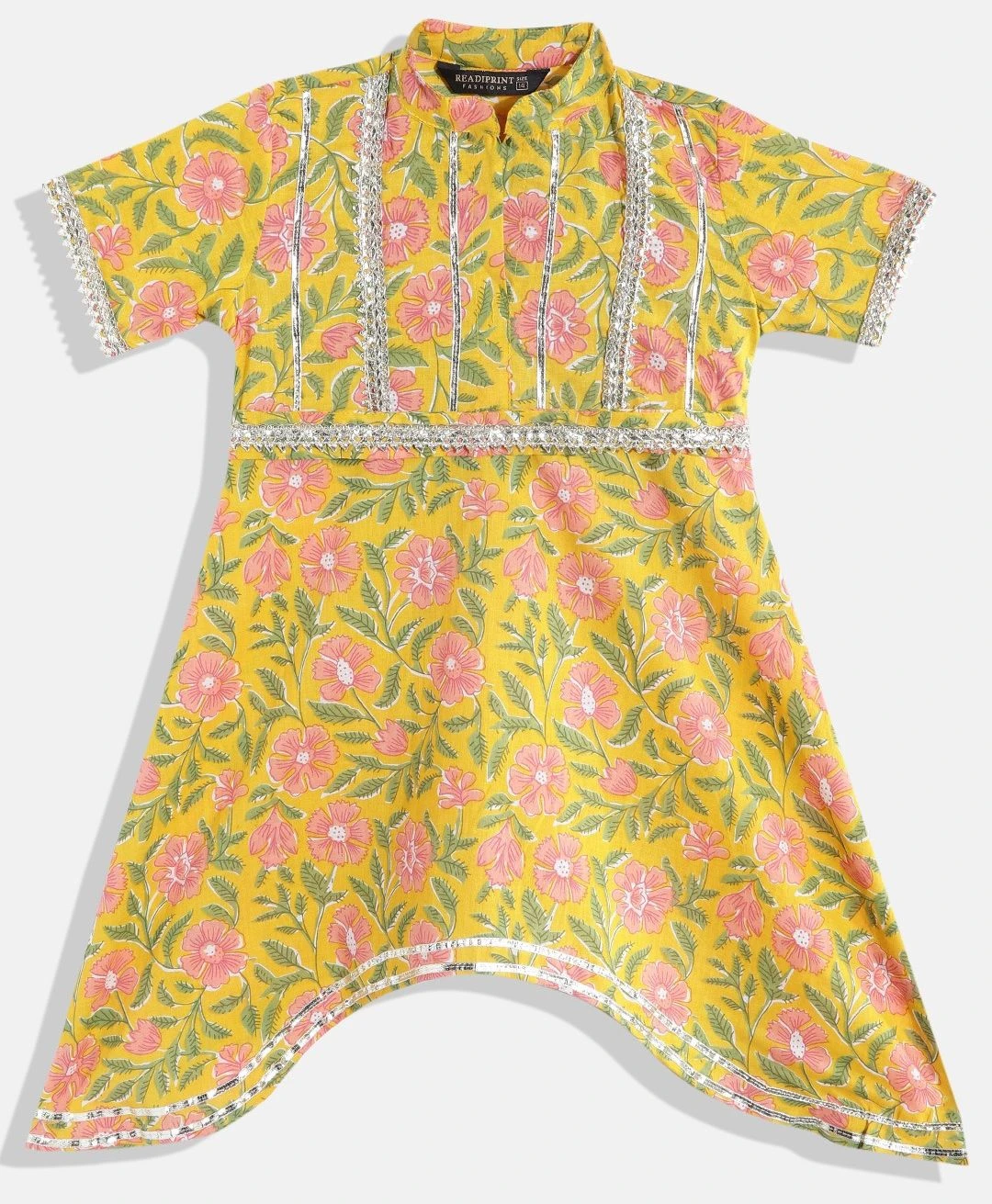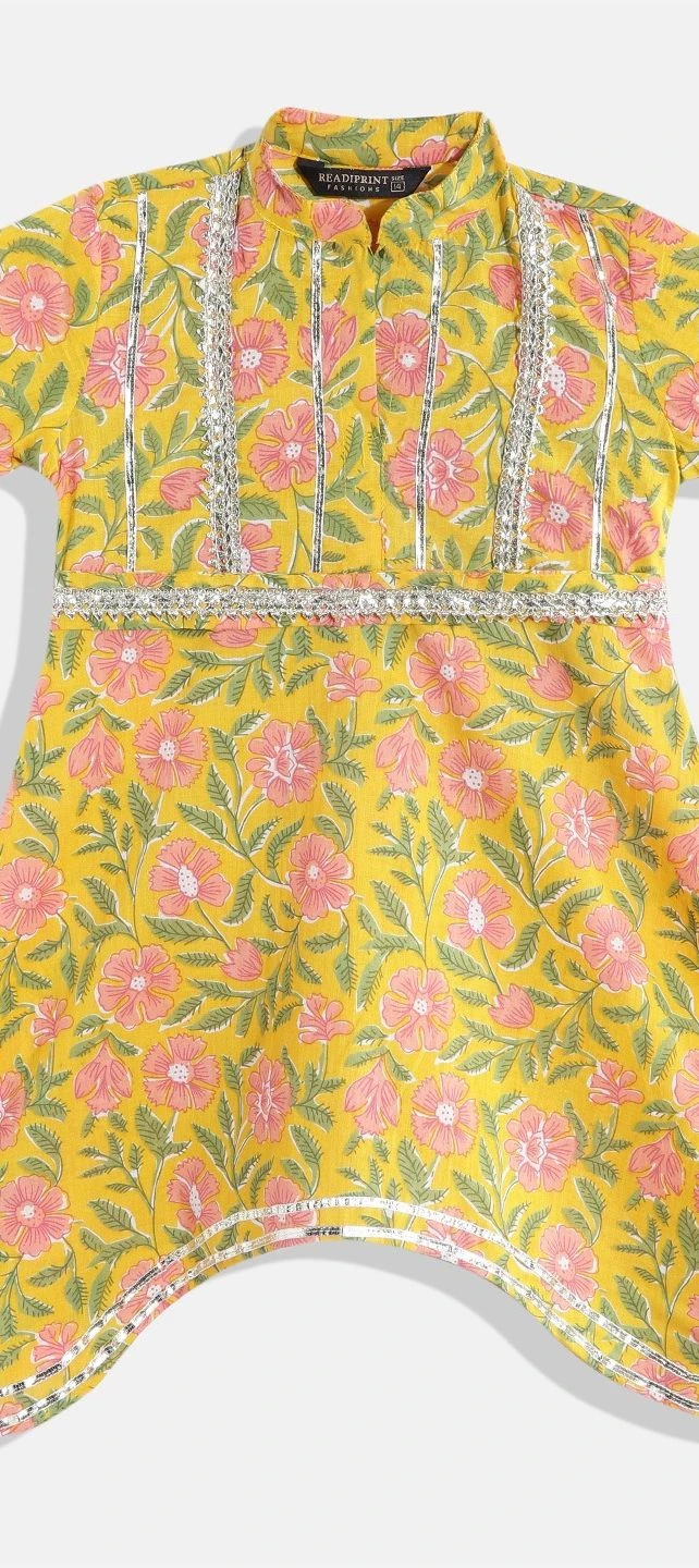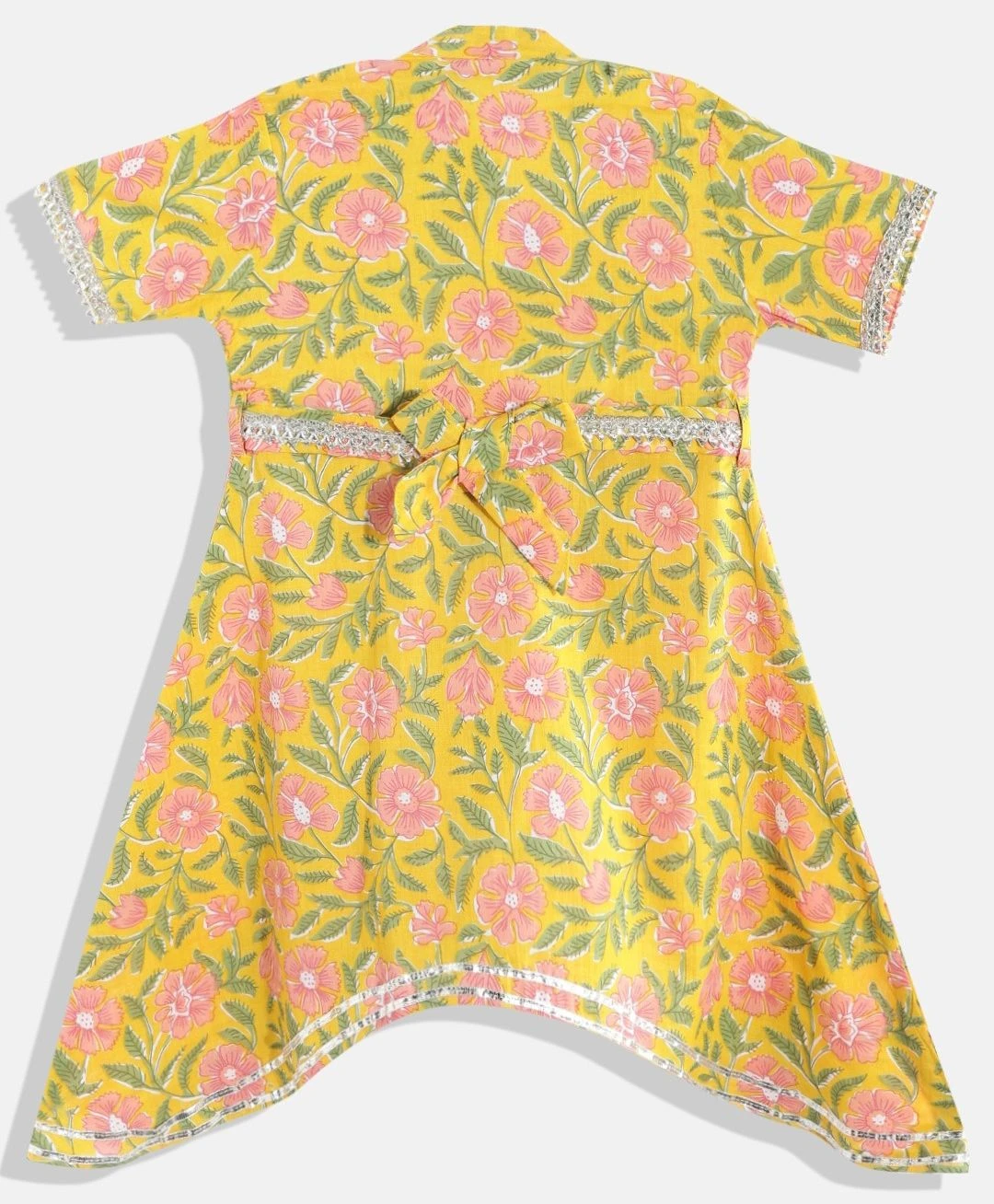 Cotton Girls Dress In Yellow With Gota Patti Work