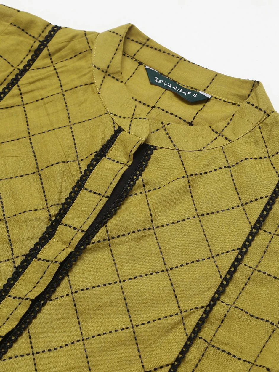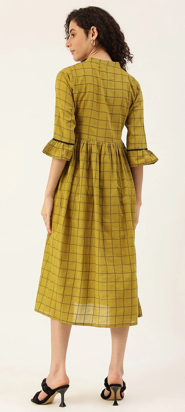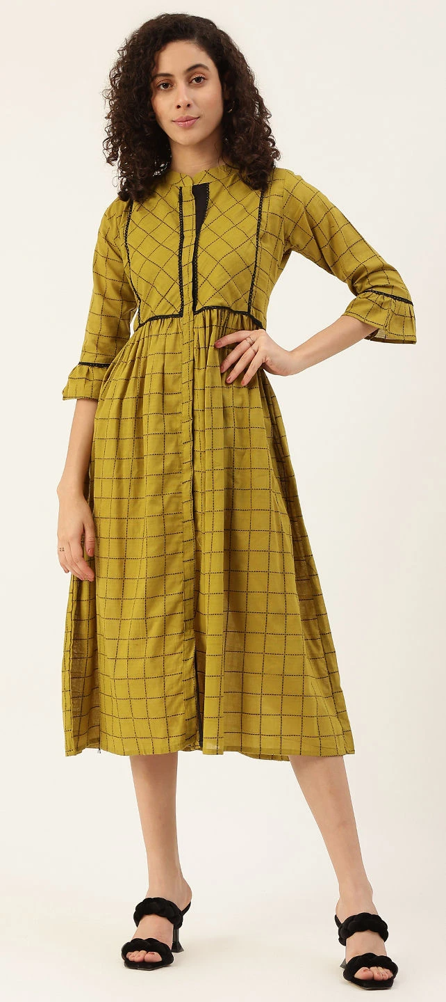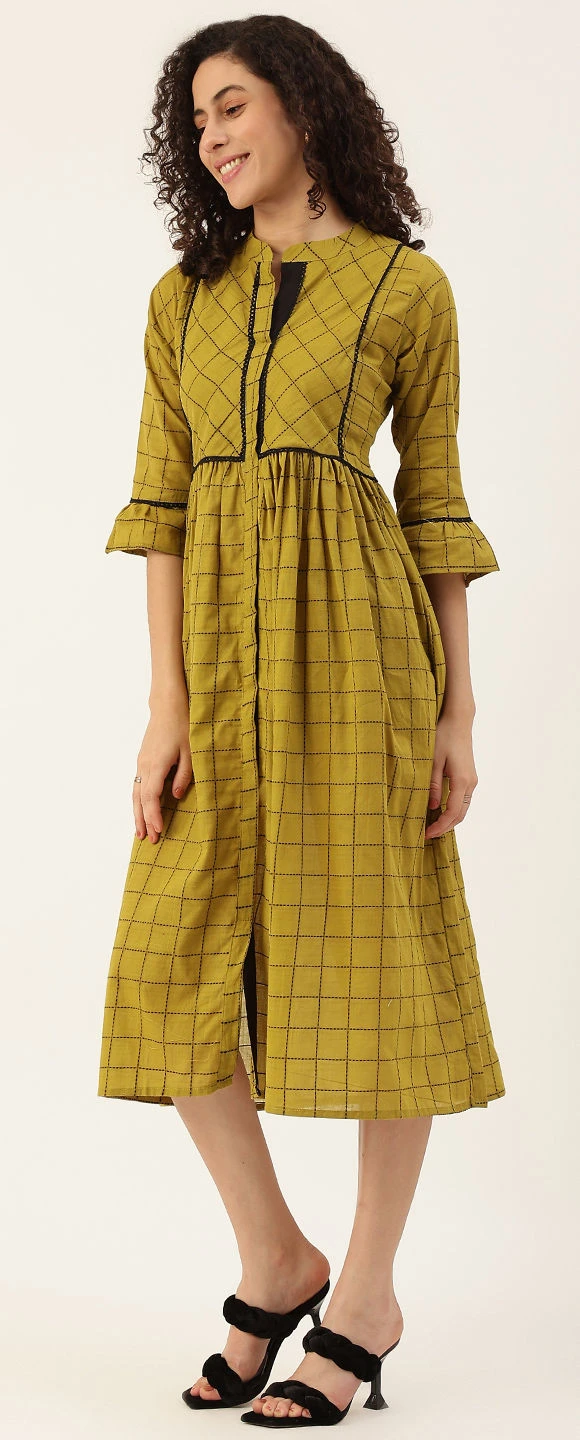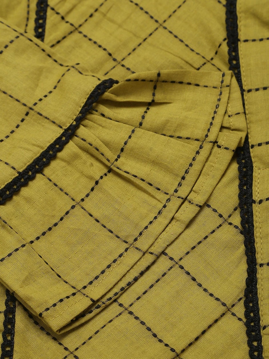 Green color Dress in Cotton fabric with Lace, Thread work