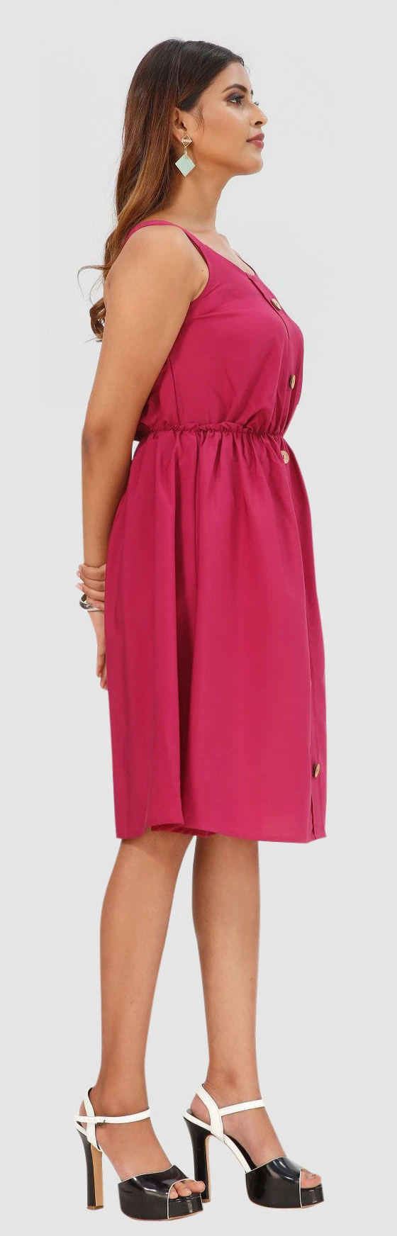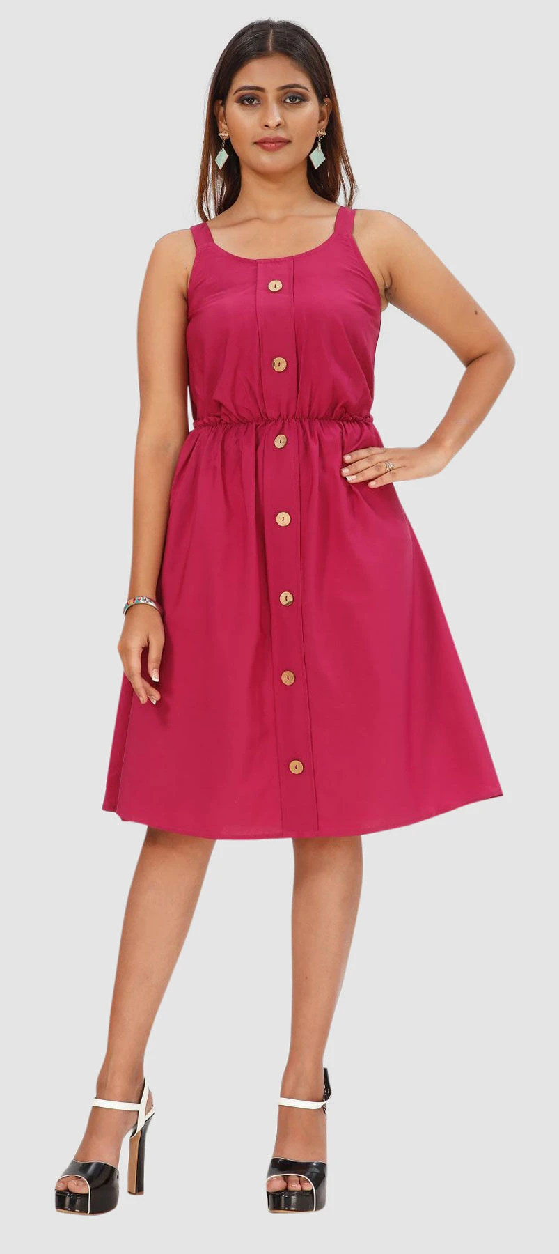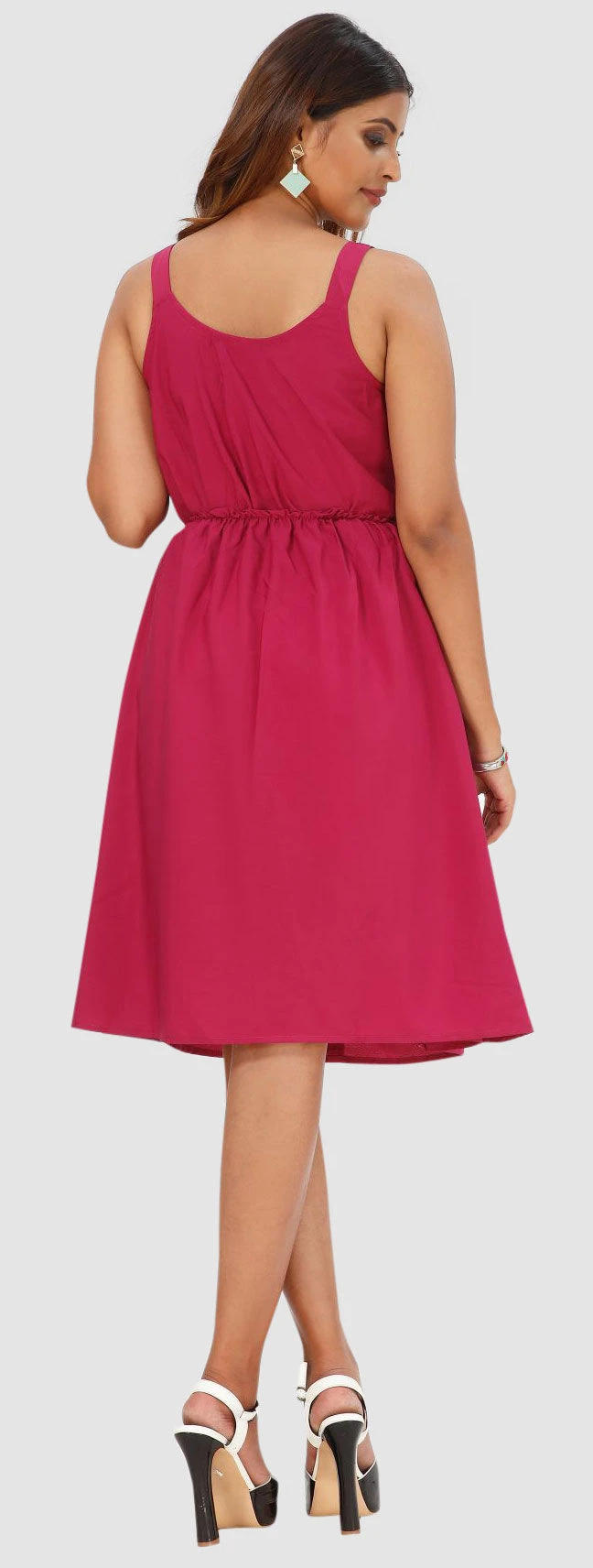 Pink and Majenta color Dress in Crepe Silk fabric with Self work