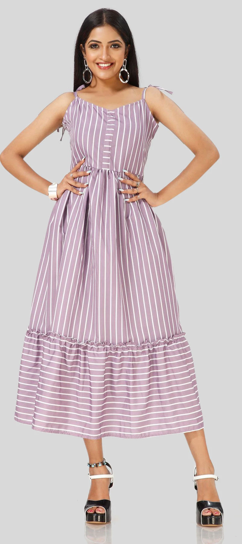 Purple and Violet color Dress in Crepe Silk fabric with Printed work