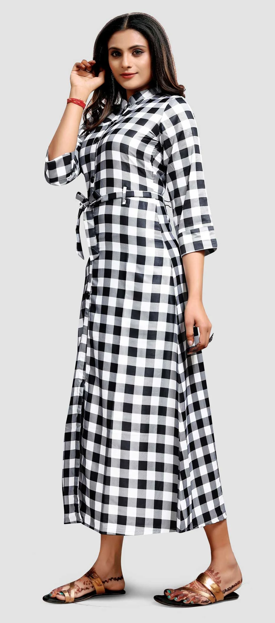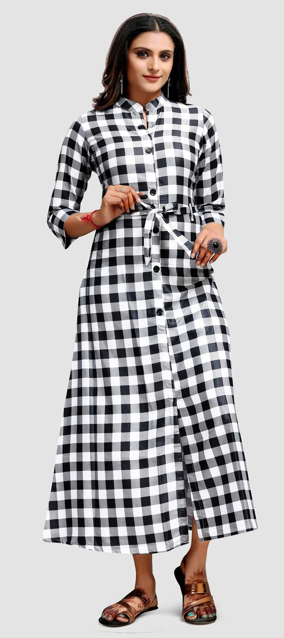 Black and Grey, White and Off White color Dress in Crepe Silk fabric with Printed work