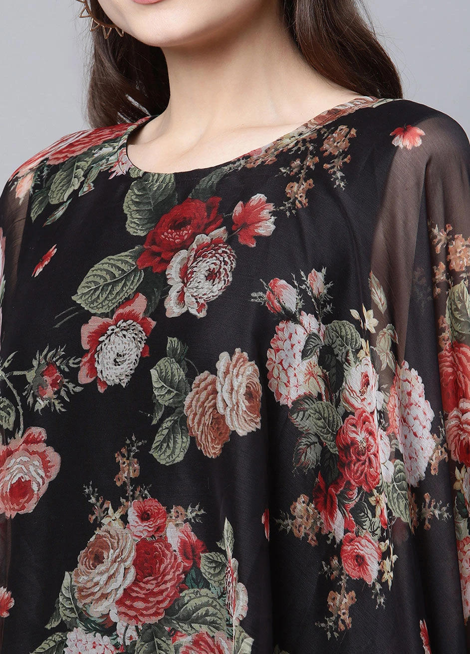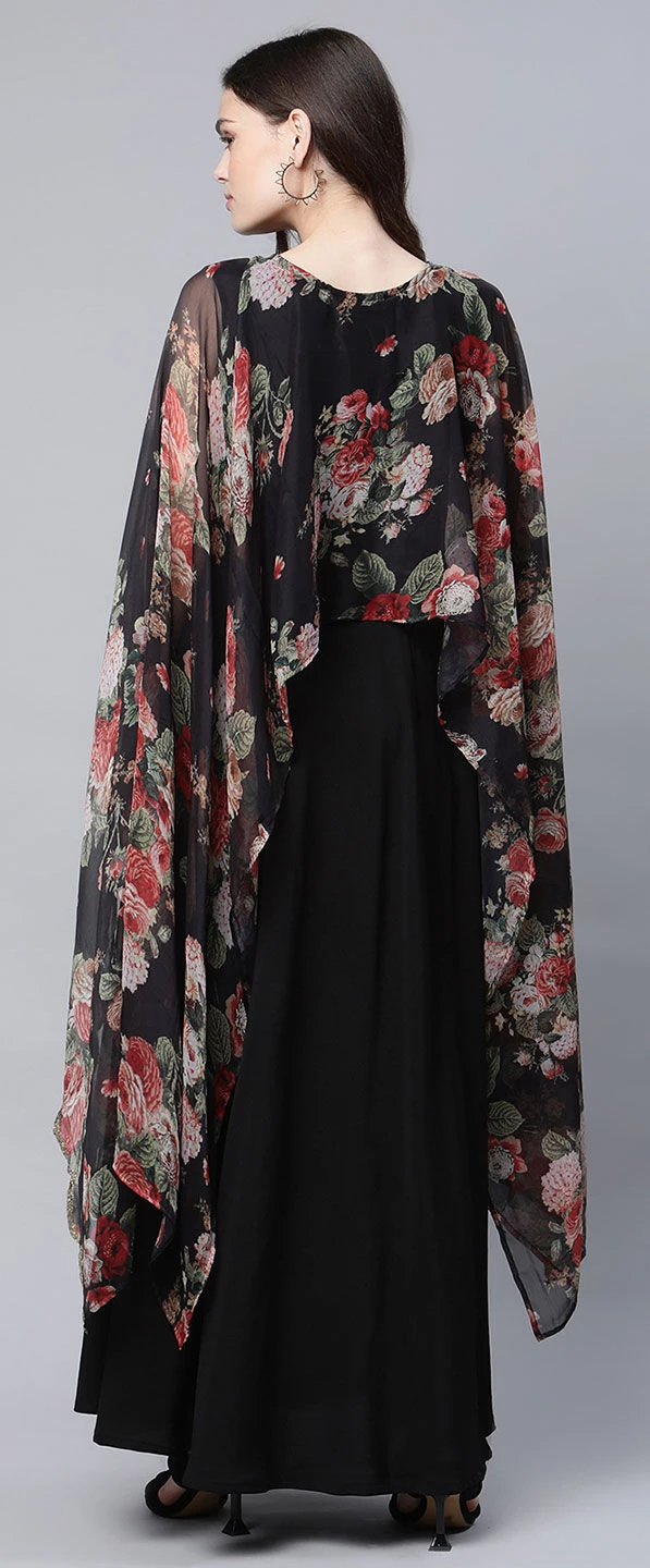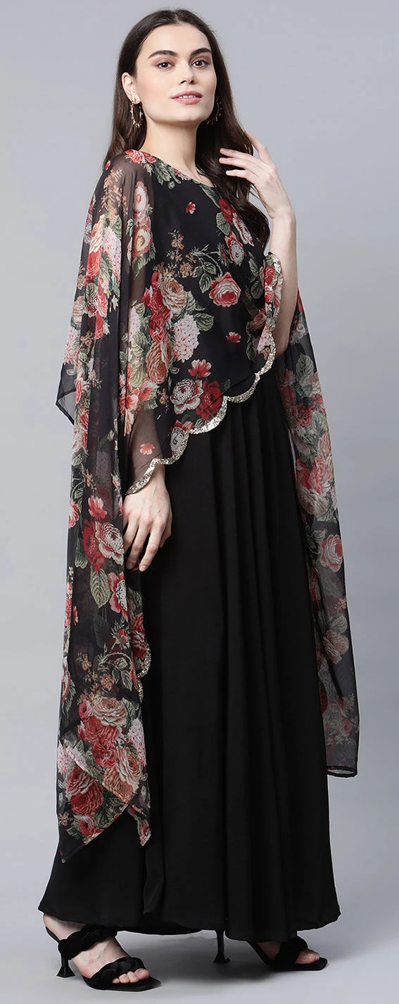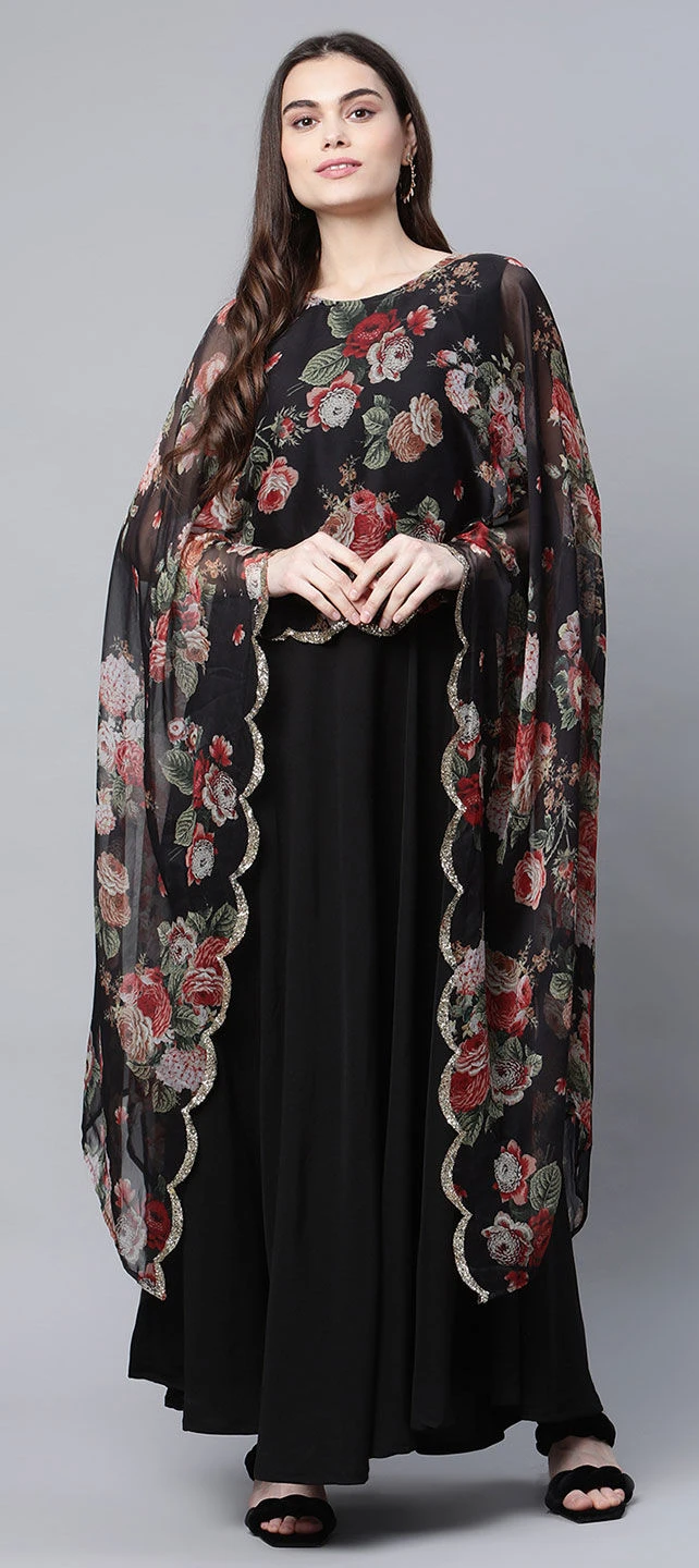 Black and Grey color Dress in Crepe Silk fabric with Printed work