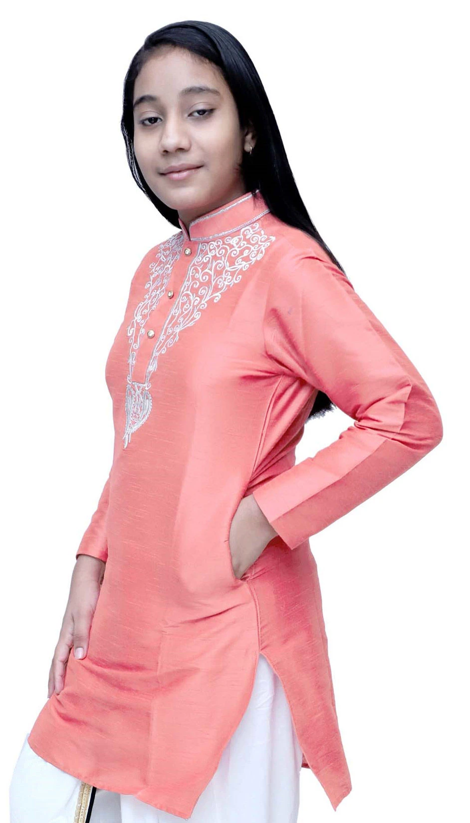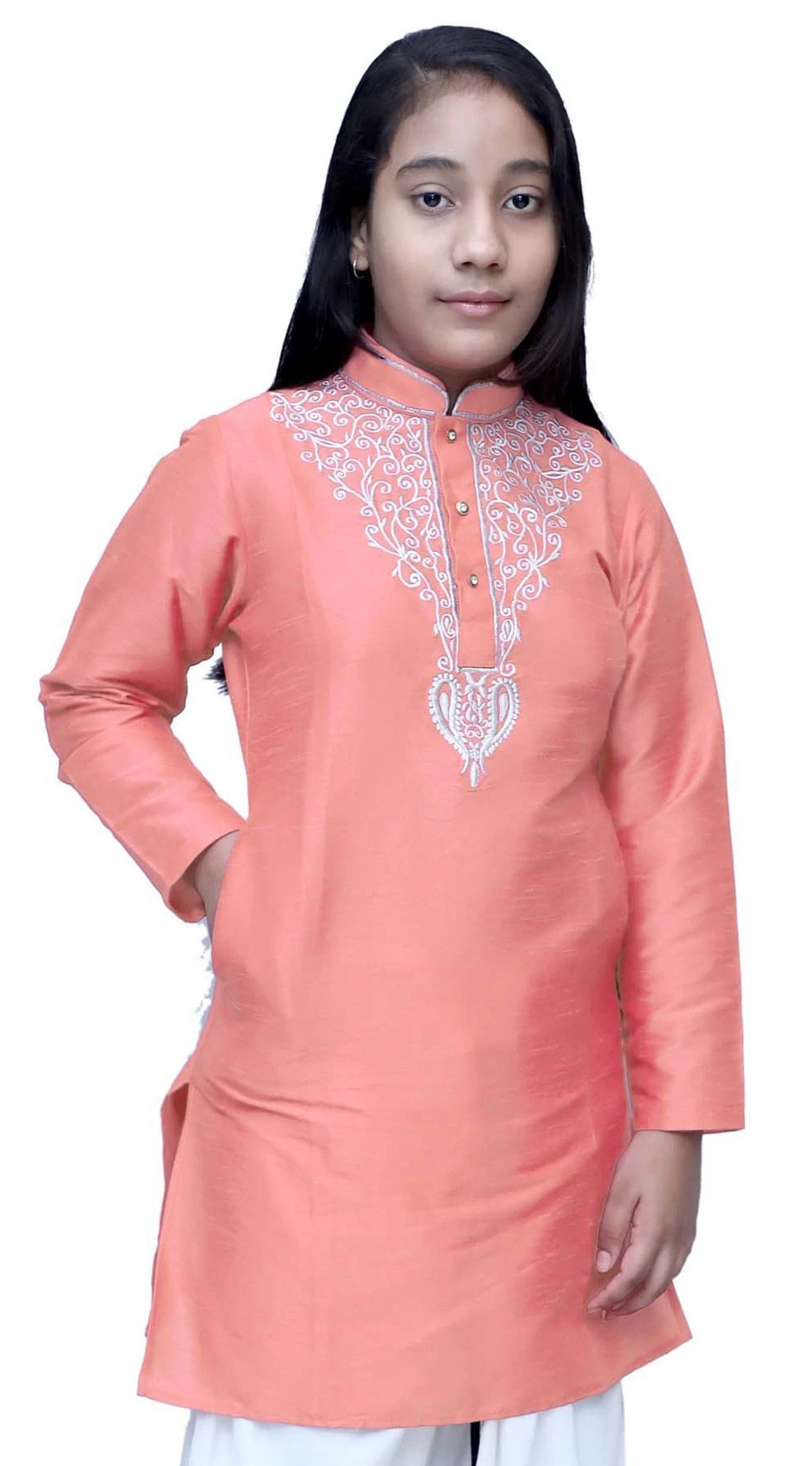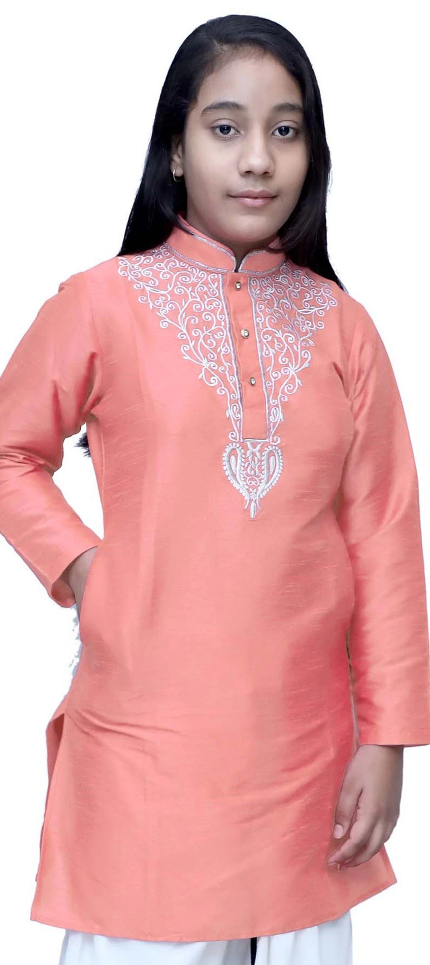 Dupion Silk Girls Dress In Pink And Majenta With Embroidered Work