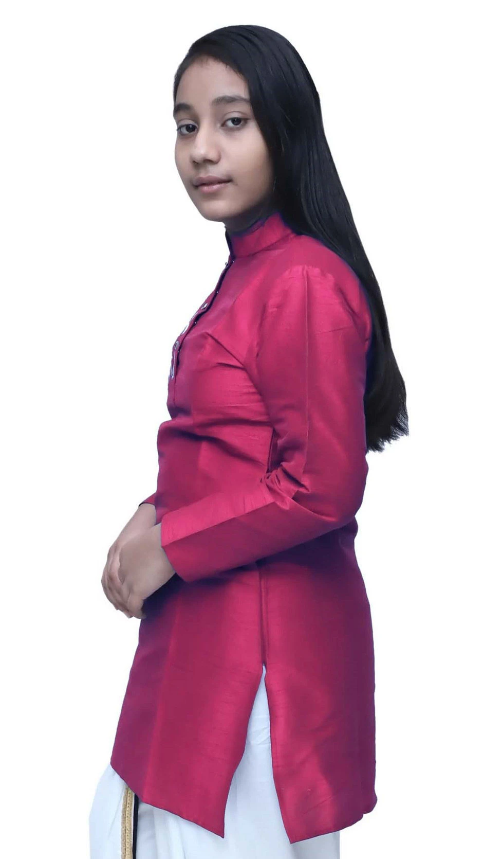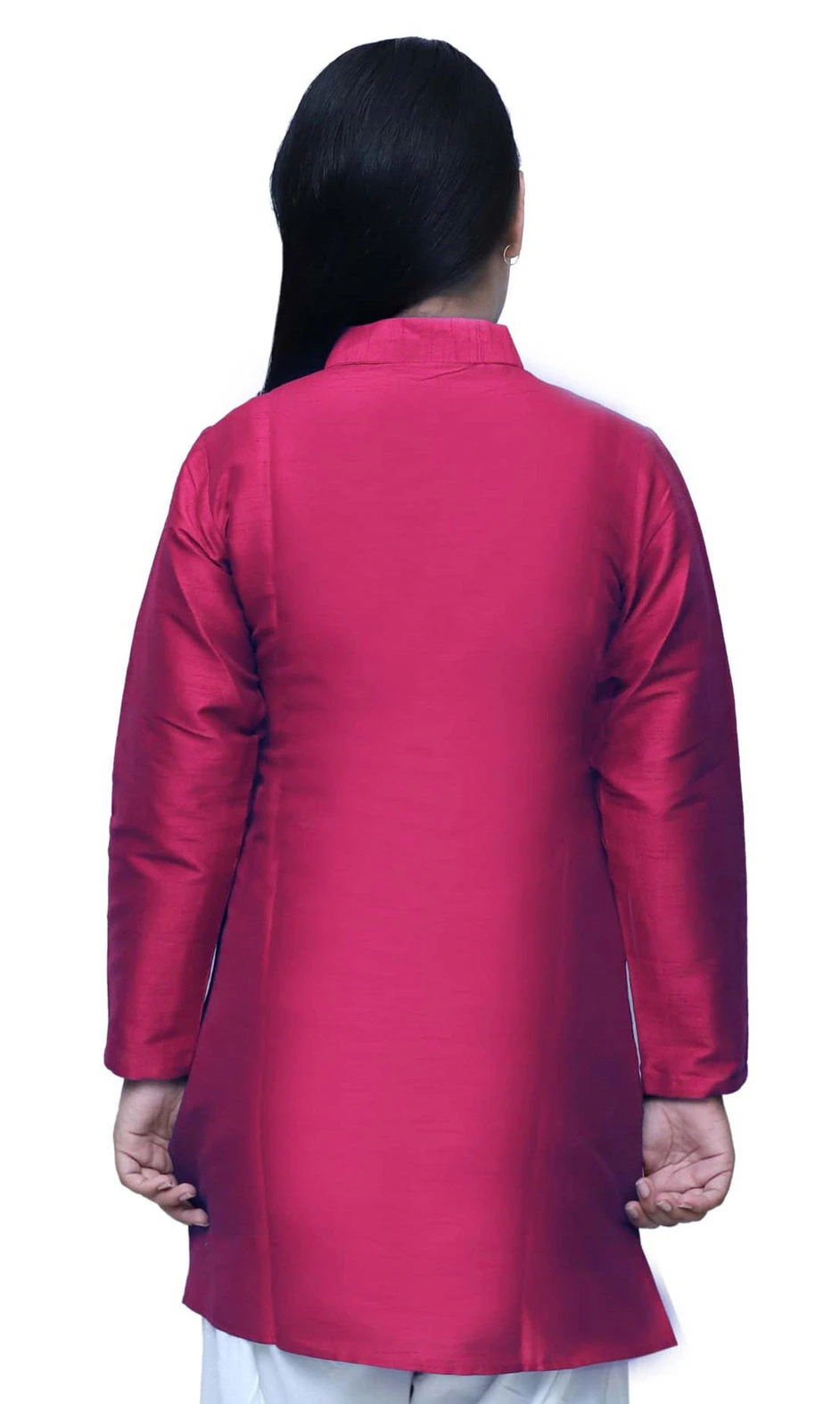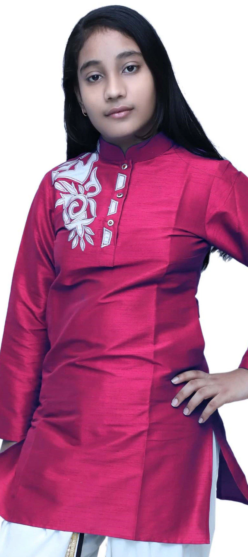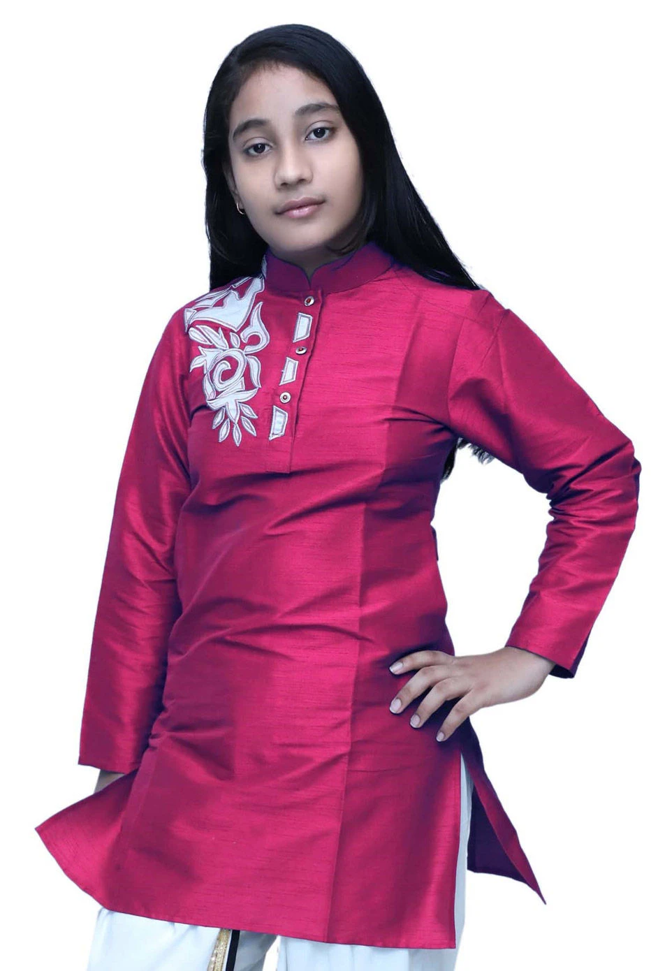 Dupion Silk Girls Dress In Pink And Majenta With Patch Work