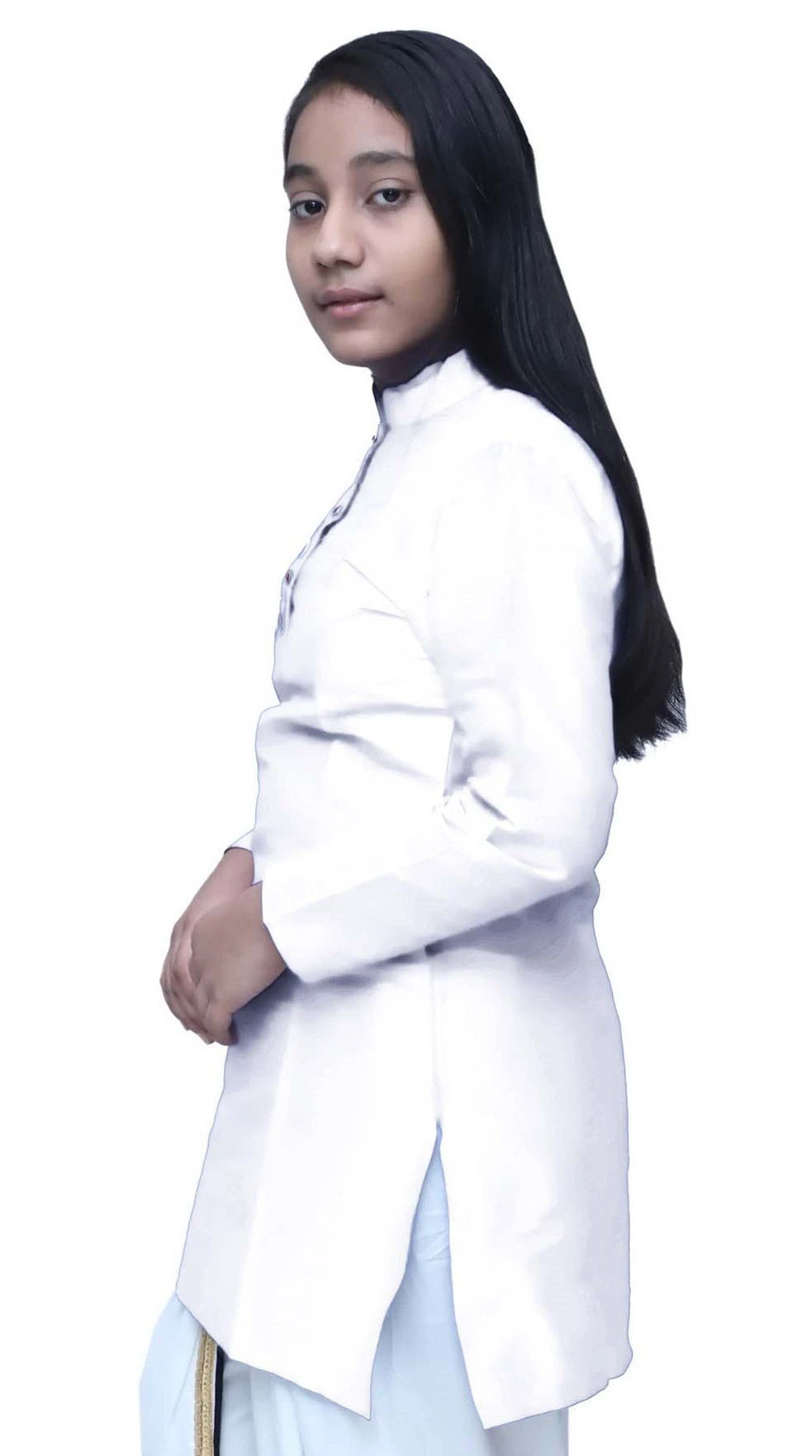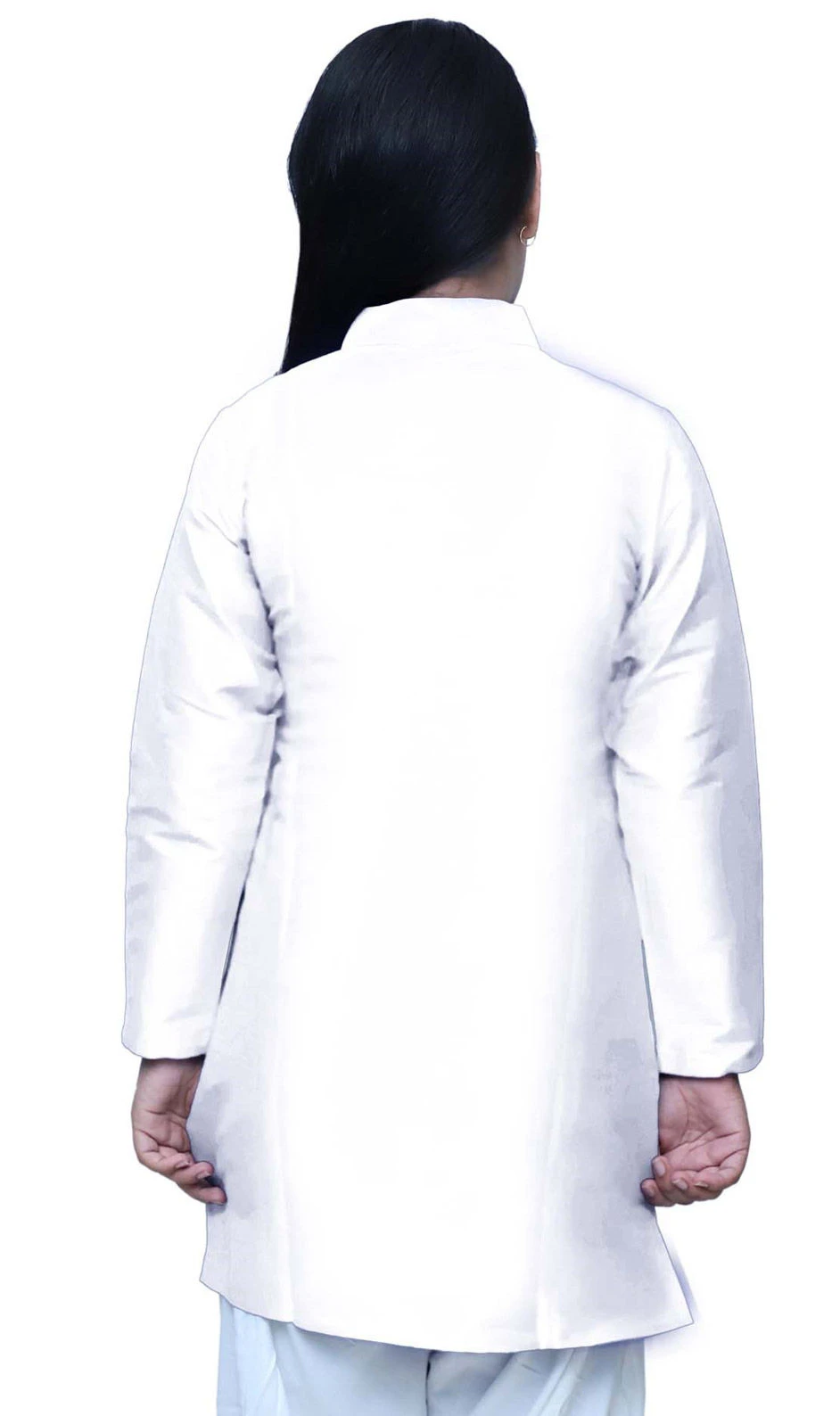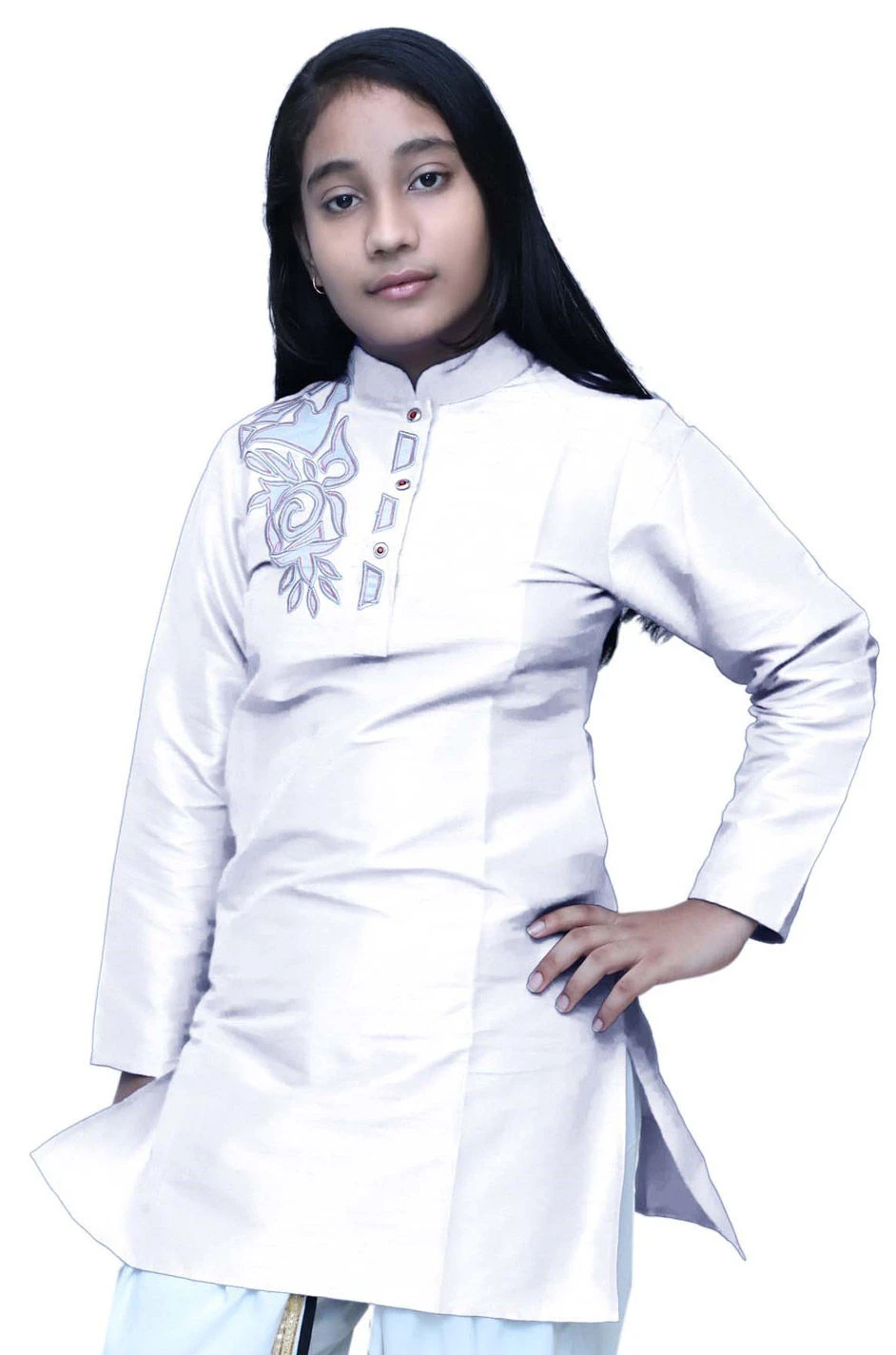 Dupion Silk Girls Dress In White And Off White With Patch Work