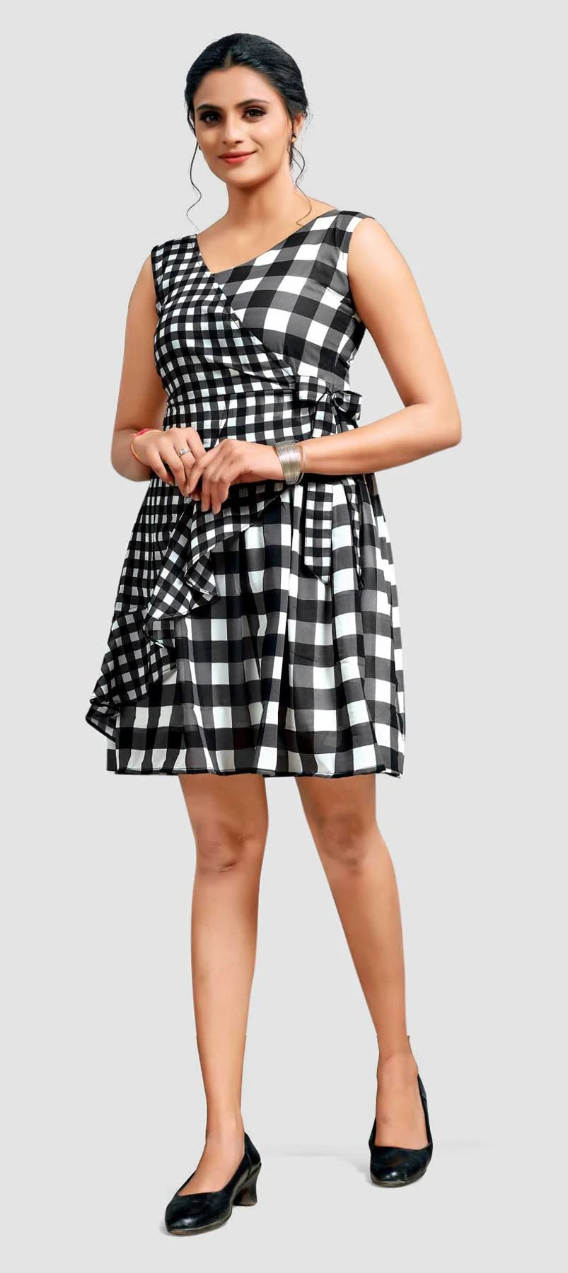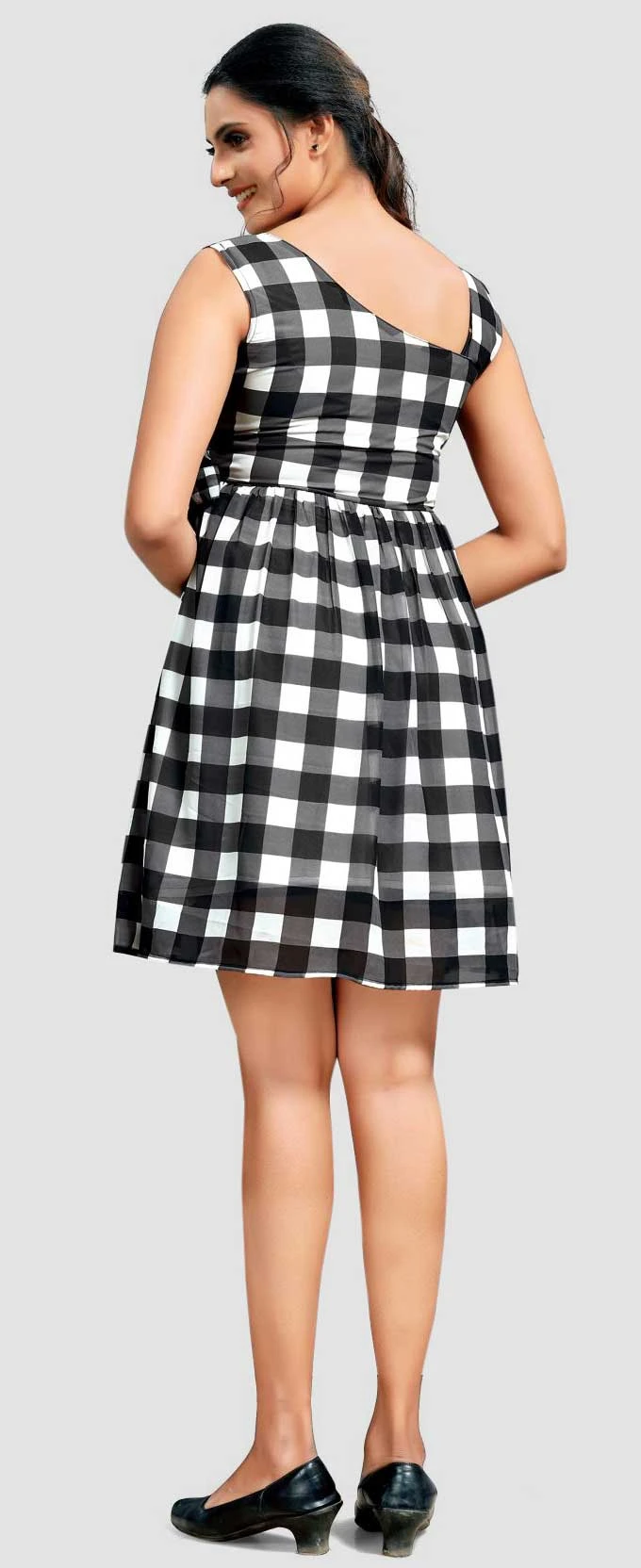 Black and Grey color Dress in Georgette fabric with Printed work