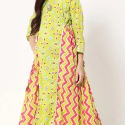 Cotton Festive Girls Dress In Pink And Majenta With Patch Work