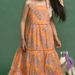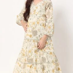Cotton Summer Girls Dress In White And Off White With Printed Work