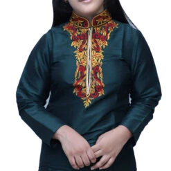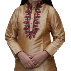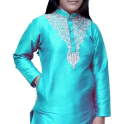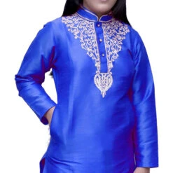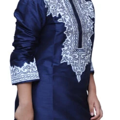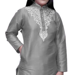 Dupion Silk Girls Dress In Black And Grey With Embroidered Work