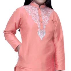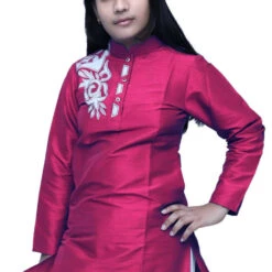 Dupion Silk Girls Dress In Pink And Majenta With Embroidered Work