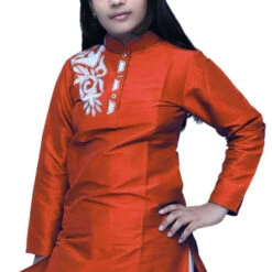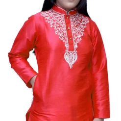 Dupion Silk Girls Dress In Red And Maroon With Embroidered Work