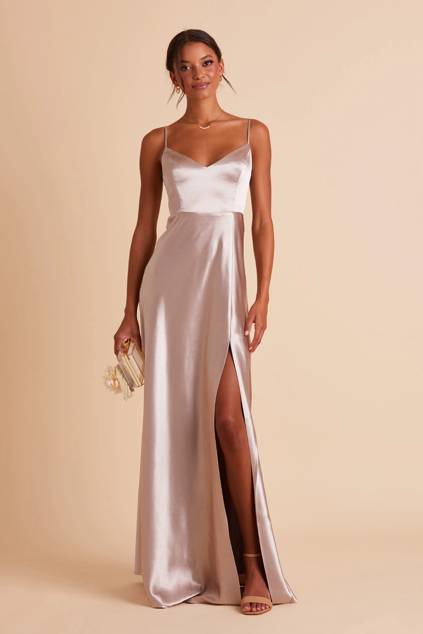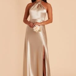Jay Shiny Satin Dress – Taupe