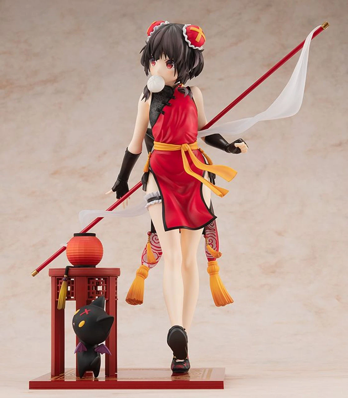 KADOKAWA presents a 1/7th scale figure of Megumin from “KONO SUBARASHII SEKAI NI SYUKUFUKU WO!”! Megumin has been recreated based off a special illustration by Kurone Mishima. The figure features Megumin wearing an originally designed Chinese dress while eating a steamed bun. Chomusuke has also been recreated beside Megumin as well! The meat bun can also be removed from the figure, allowing you to display Megumin with a smiling expression too. Be sure to add her to your collection!