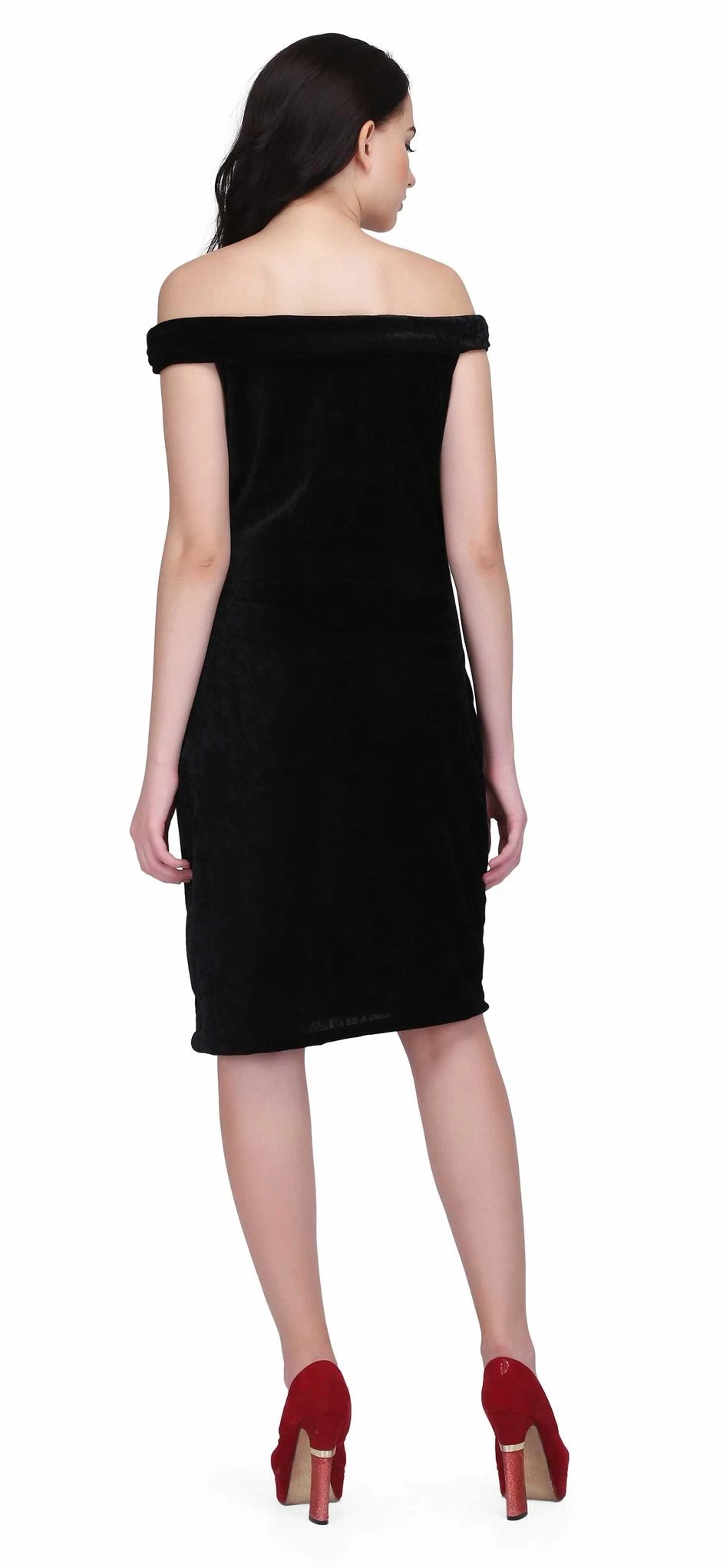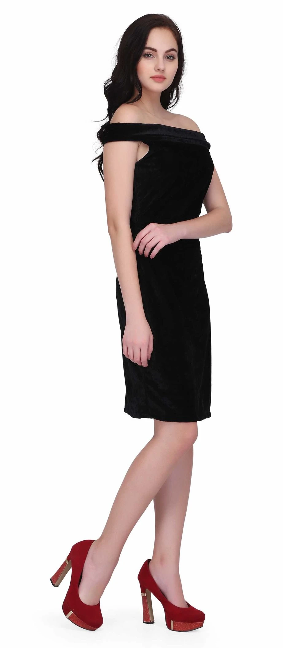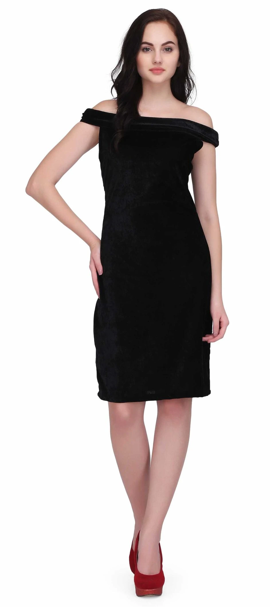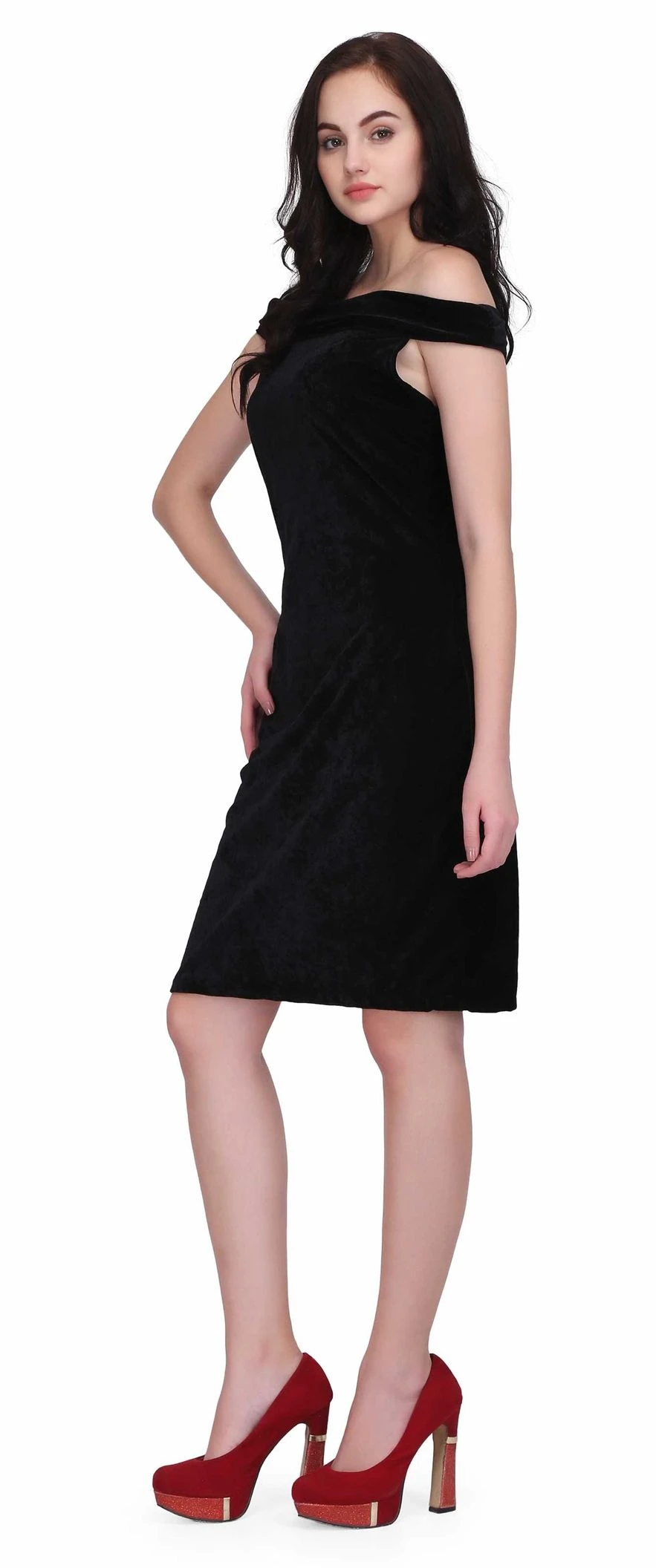 Black and Grey color Dress in Lycra, Velvet fabric with Thread work