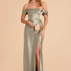 Mia Shiny Satin Convertible Dress – Gold