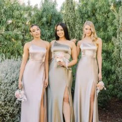 Kensie Shiny Satin Dress – Neutral Champagne