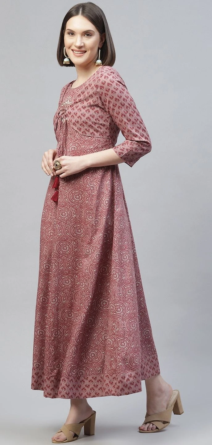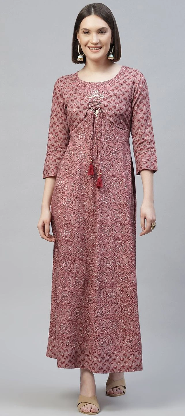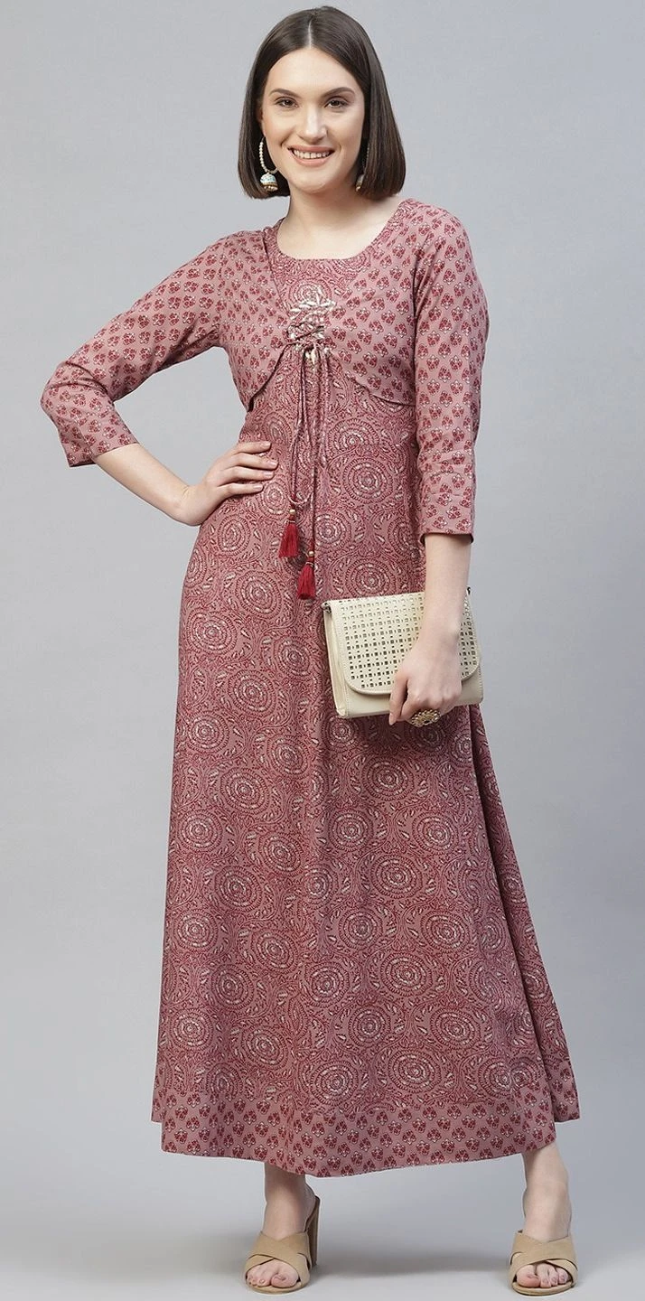 Purple and Violet color Dress in Rayon fabric with Floral, Printed work