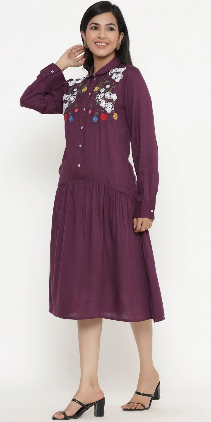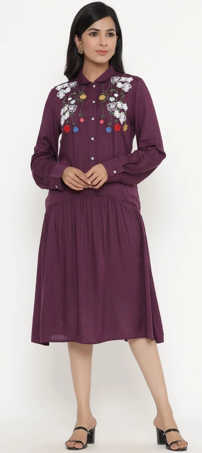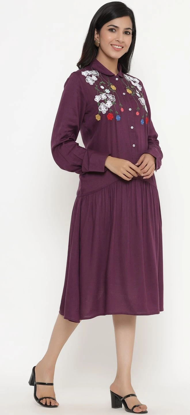 Purple and Violet color Dress in Rayon fabric with Embroidered, Resham, Thread work