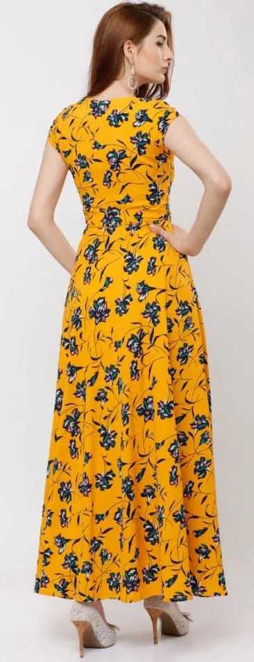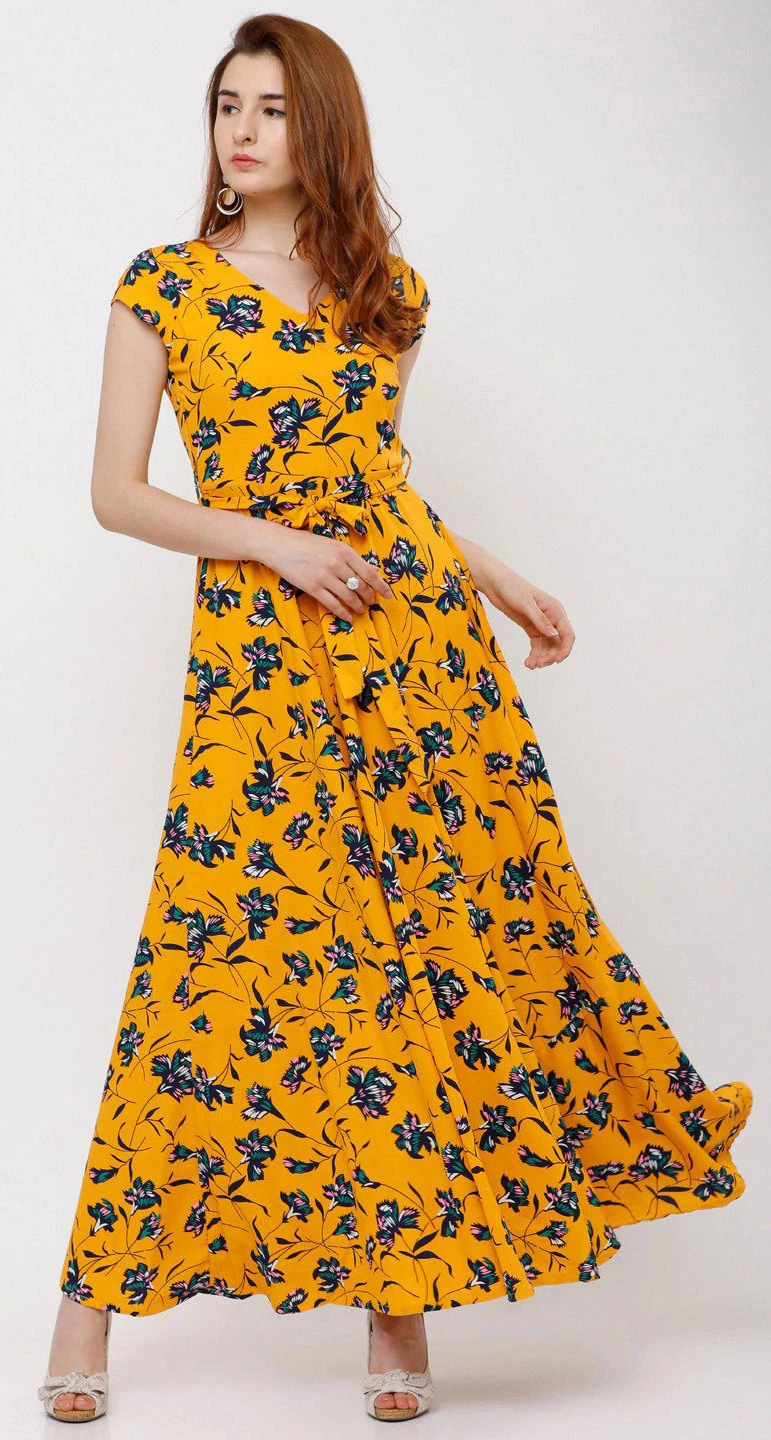 Yellow color Dress in Rayon fabric with Printed work
