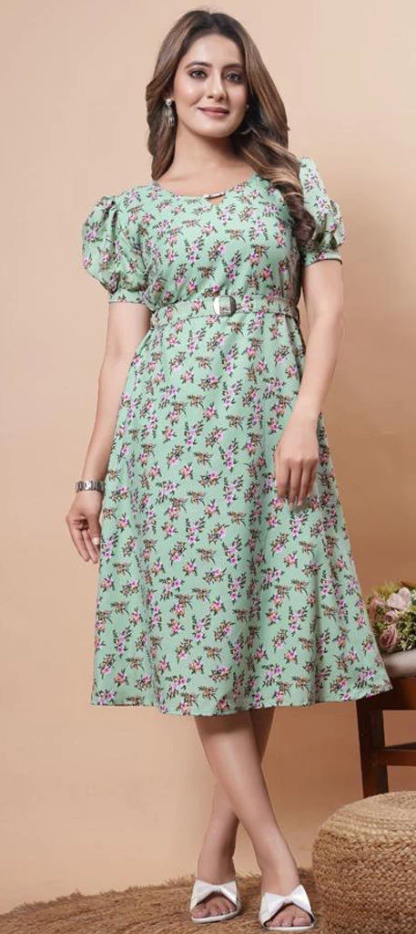 Green color Dress in Rayon fabric with Floral, Printed work