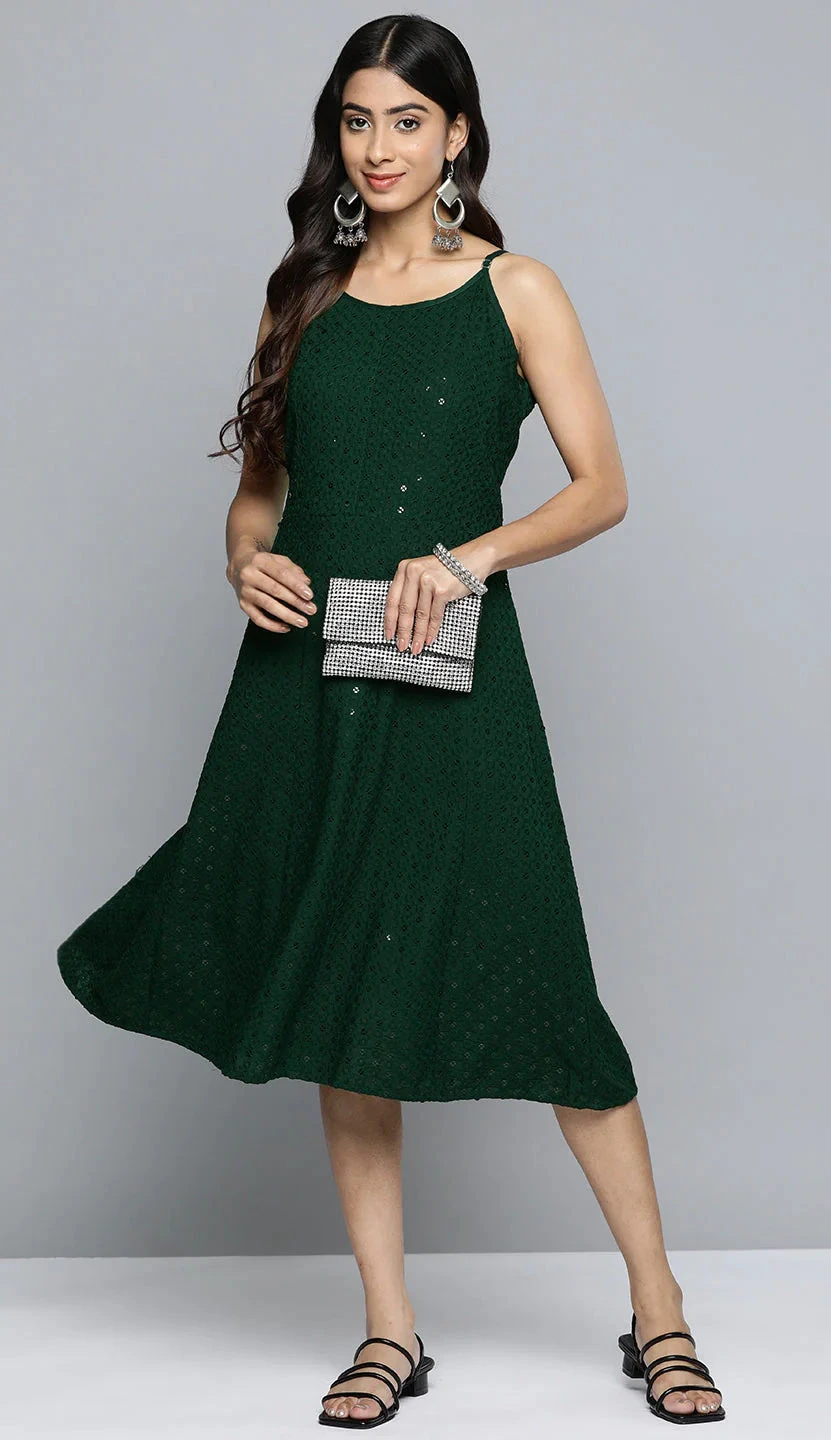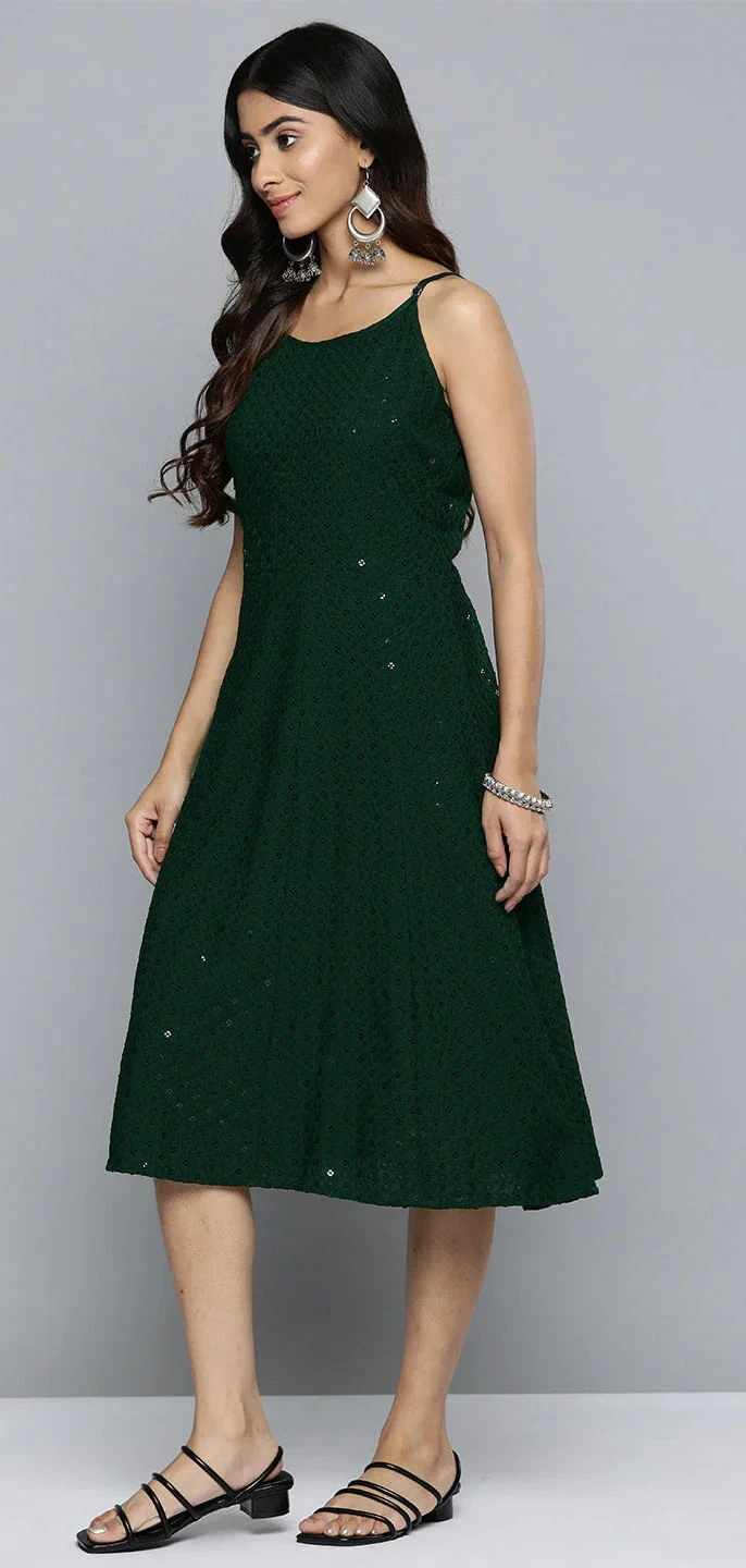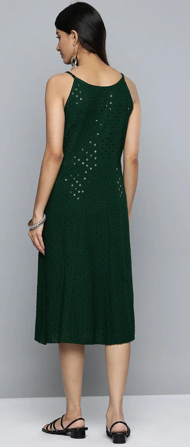 Green color Dress in Rayon fabric with Sequence work