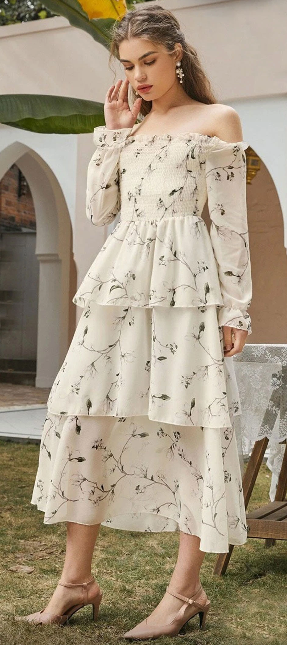 White and Off White color Dress in Rayon fabric with Digital Print, Floral work