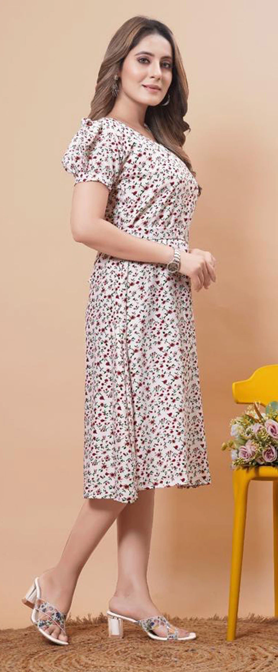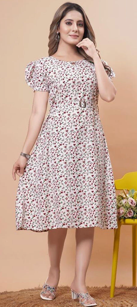White and Off White color Dress in Rayon fabric with Floral, Printed work