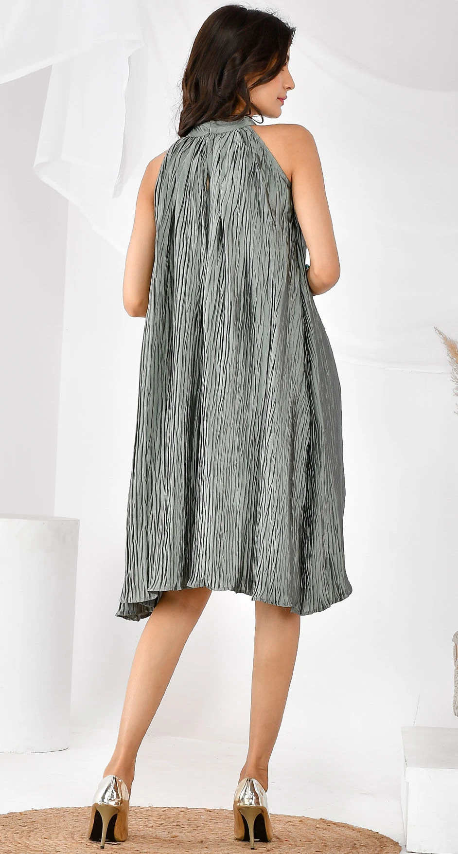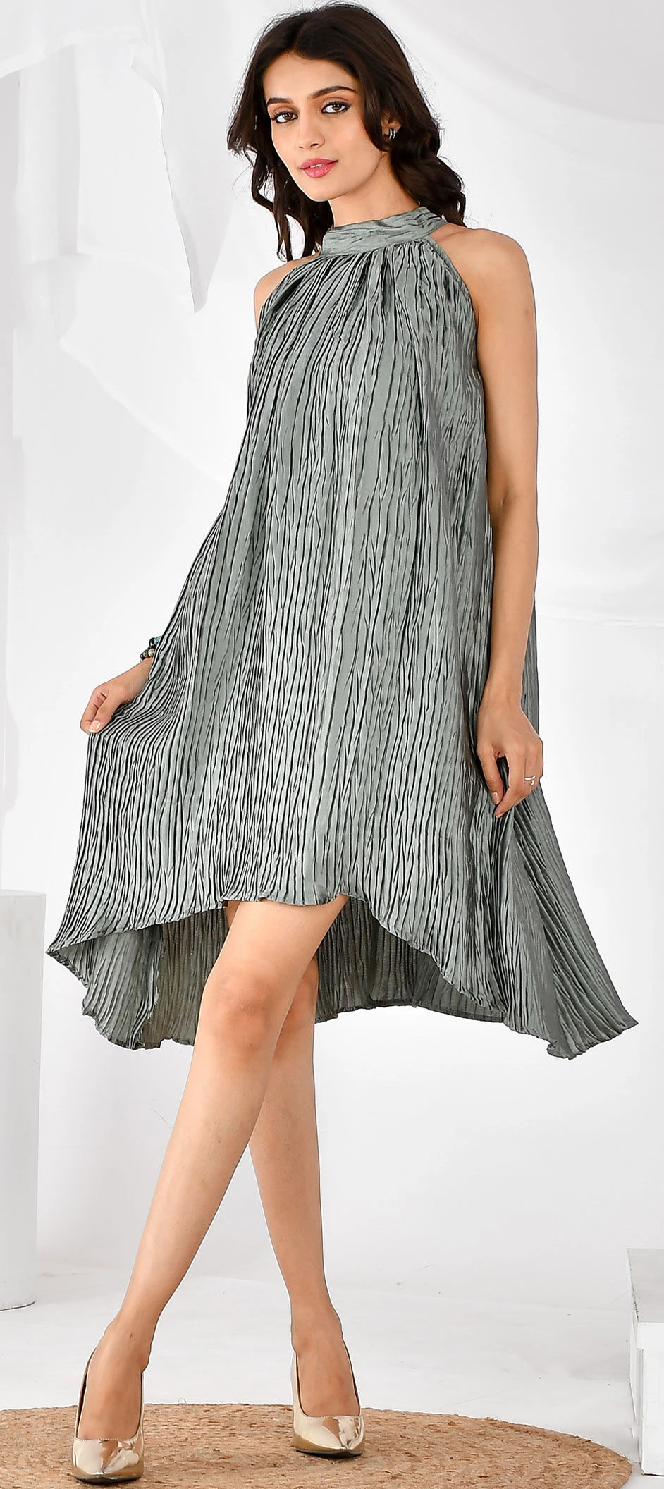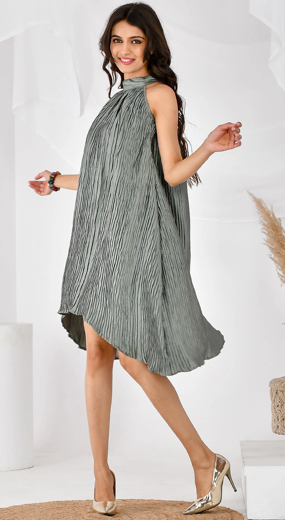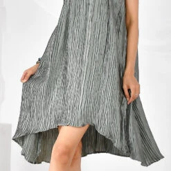 Black and Grey color Dress in Satin Silk fabric with Pleats work