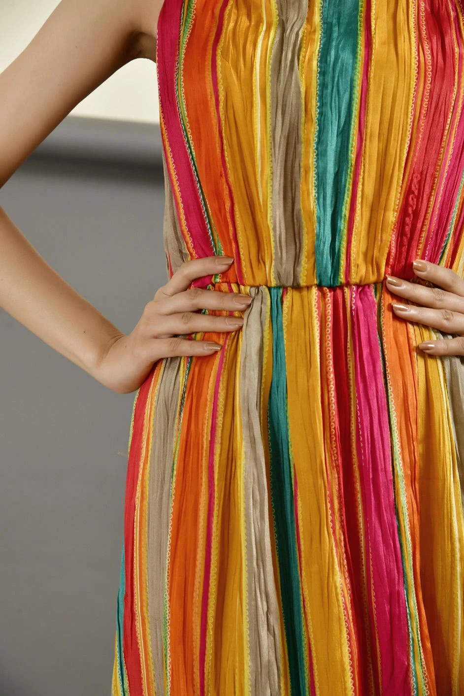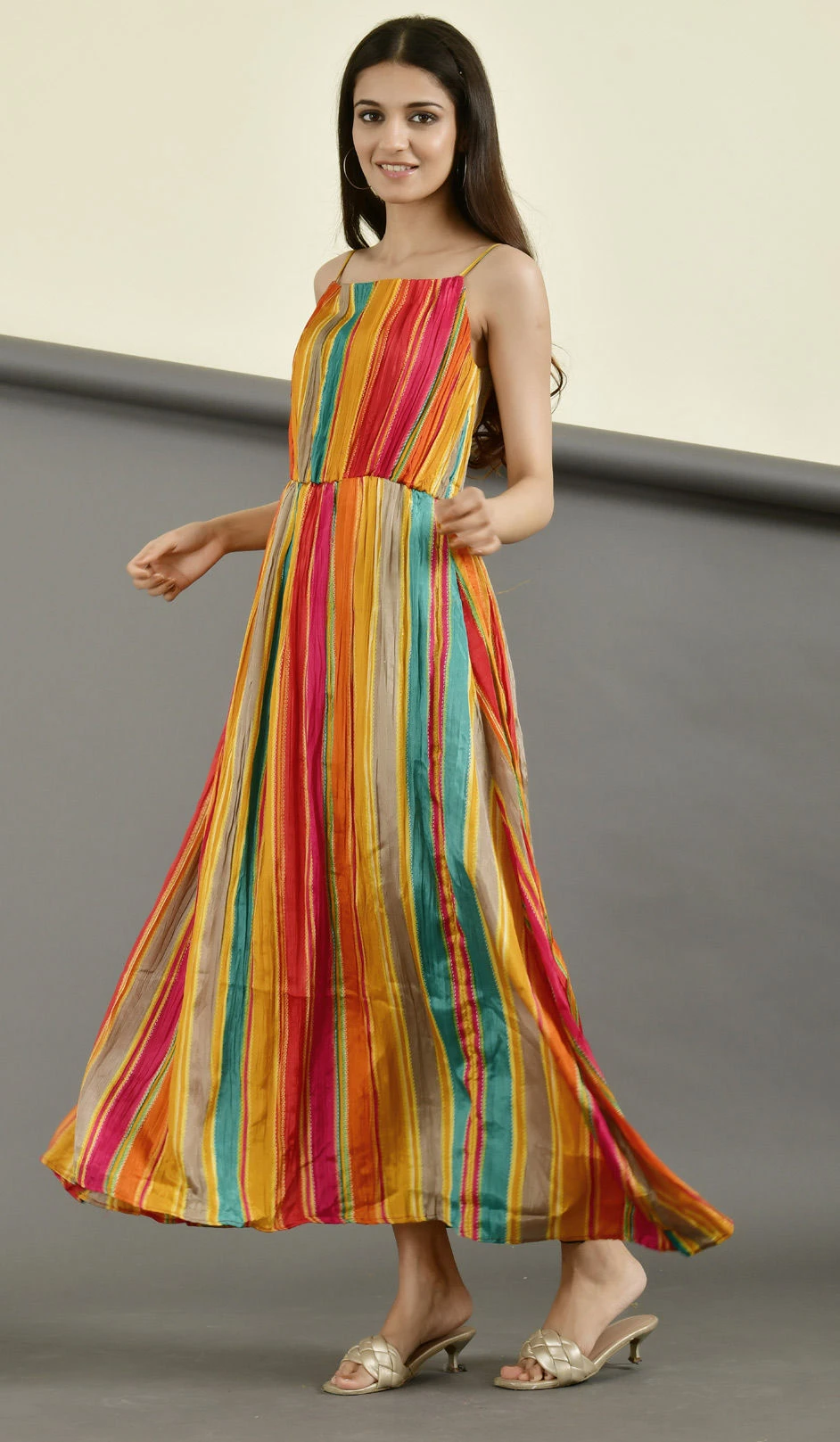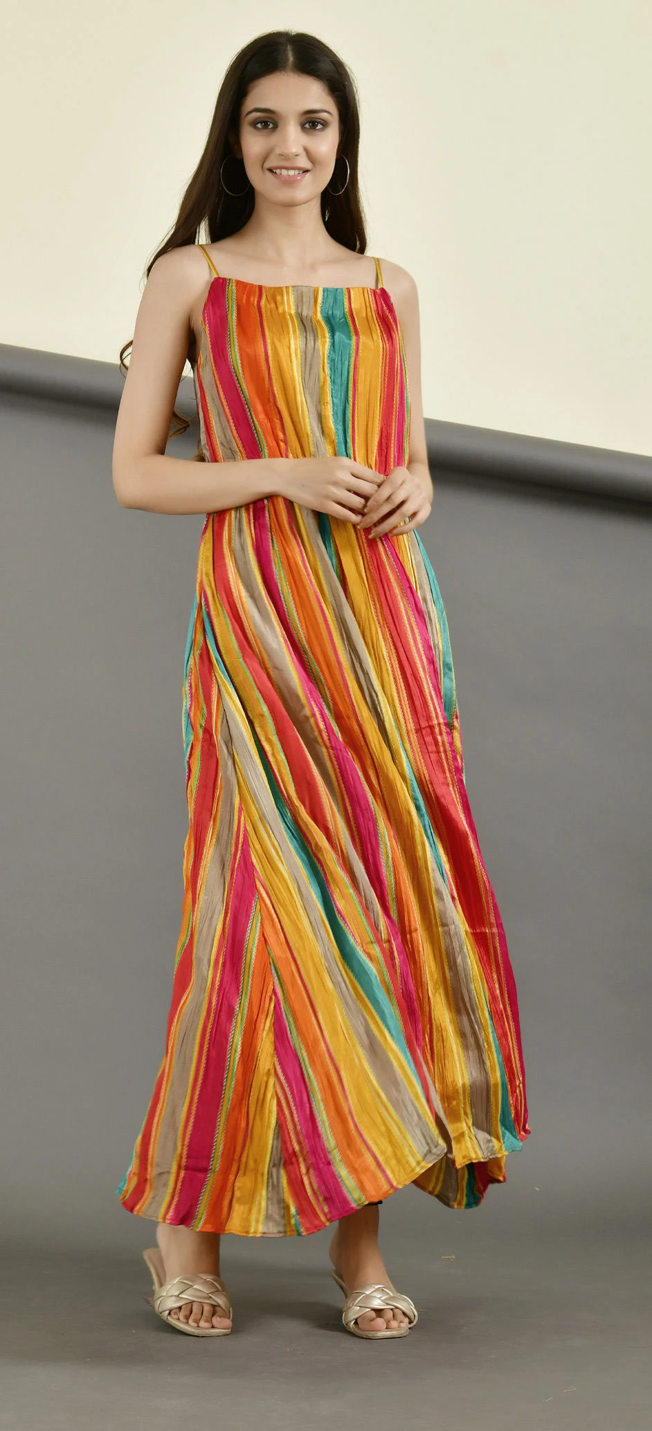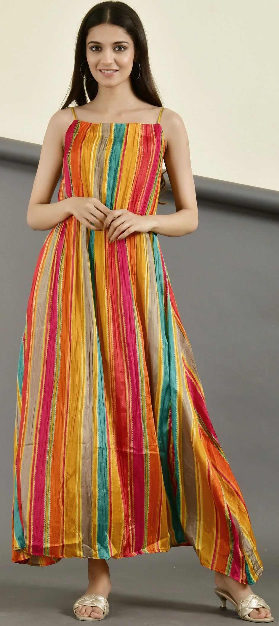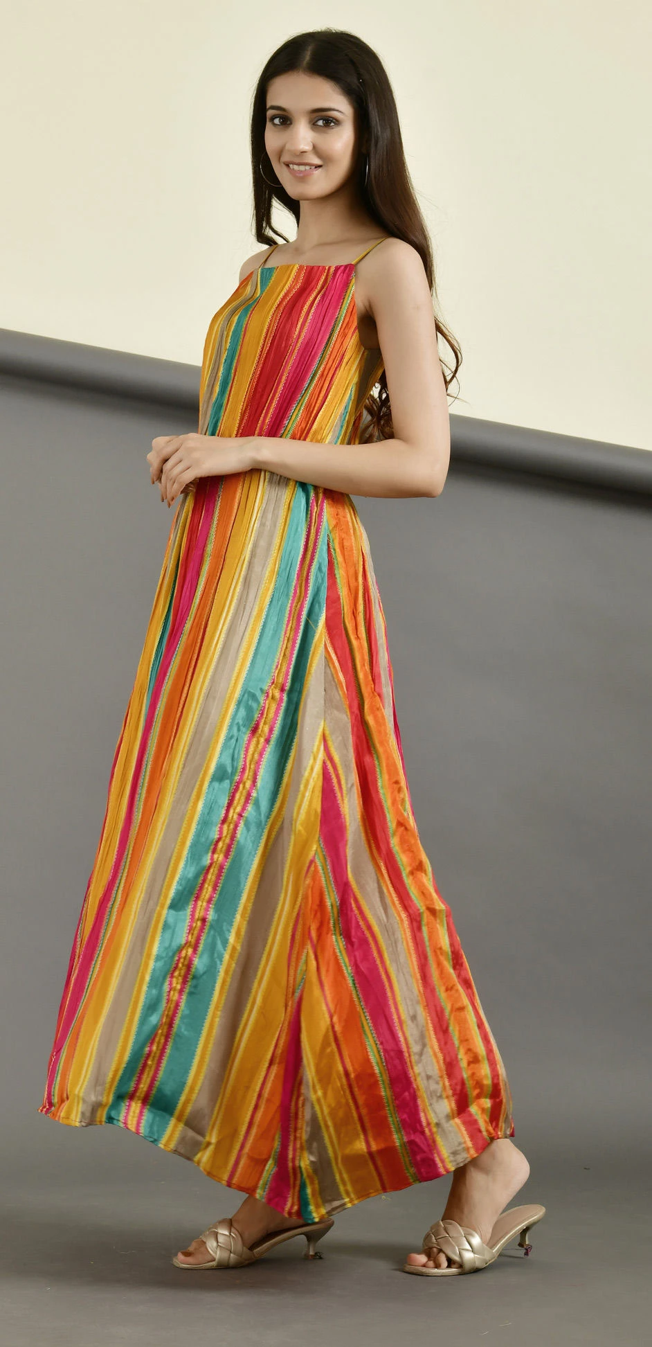 Red and Maroon, Yellow color Dress in Silk fabric with Printed work