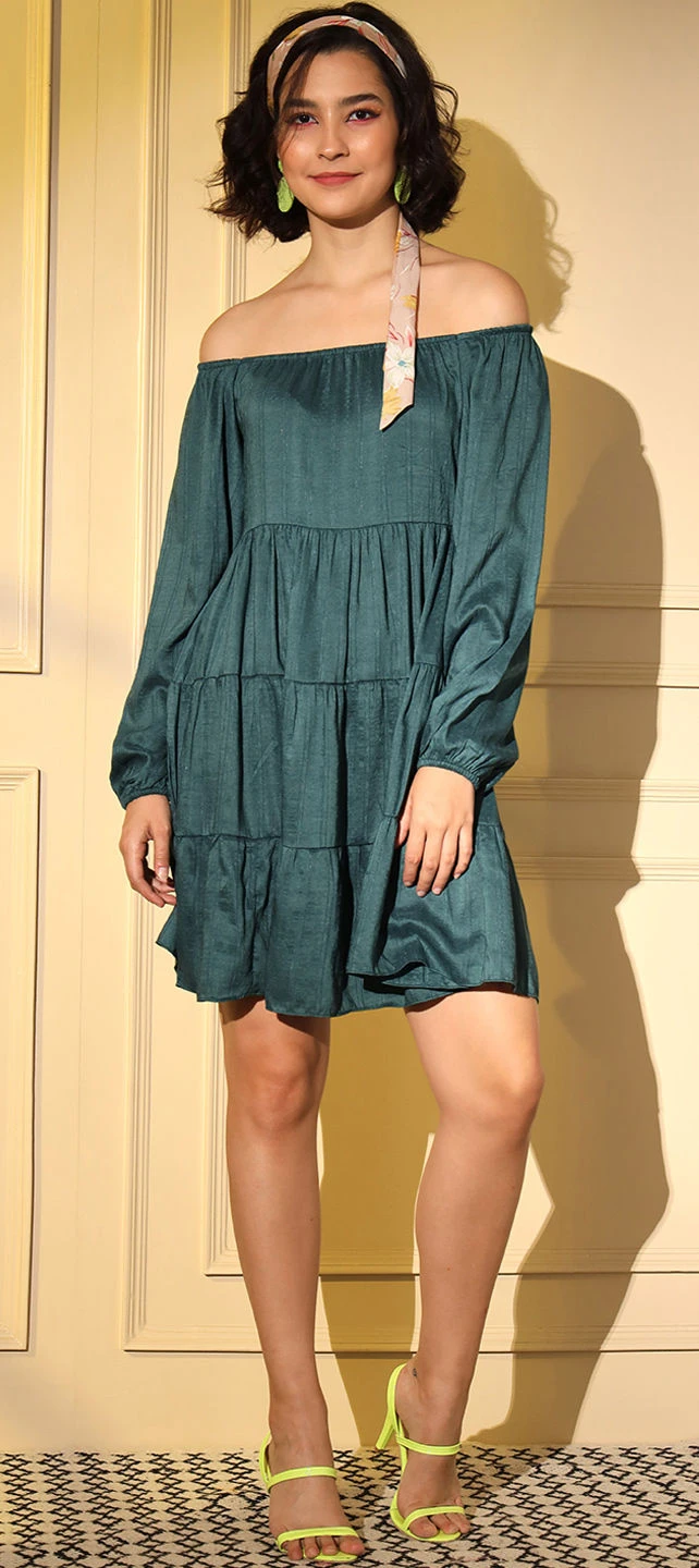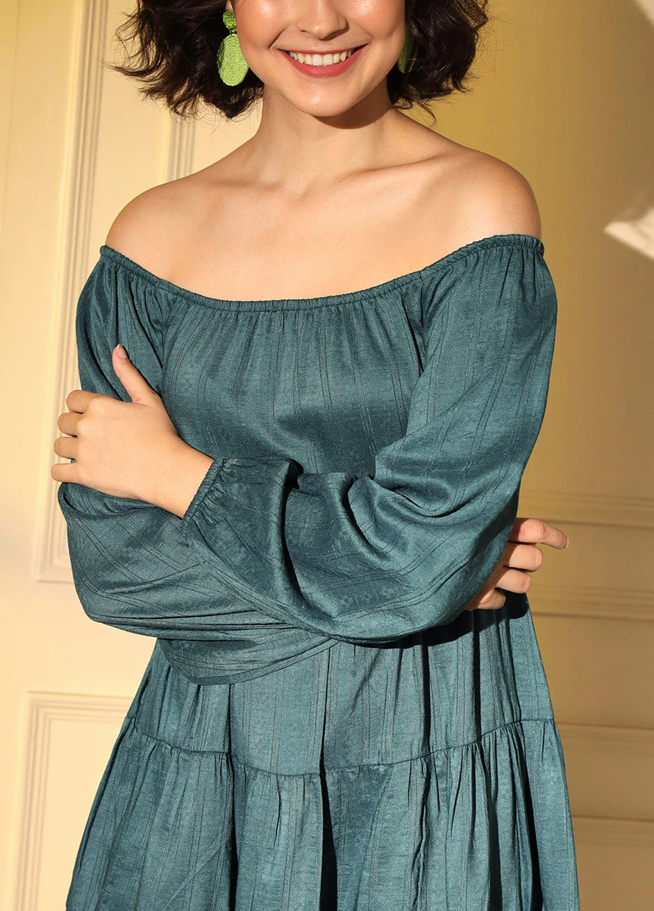 Blue color Dress in Viscose fabric with Thread work