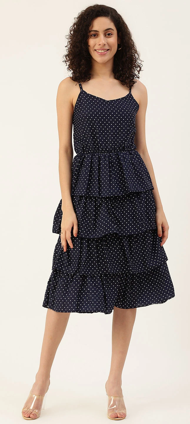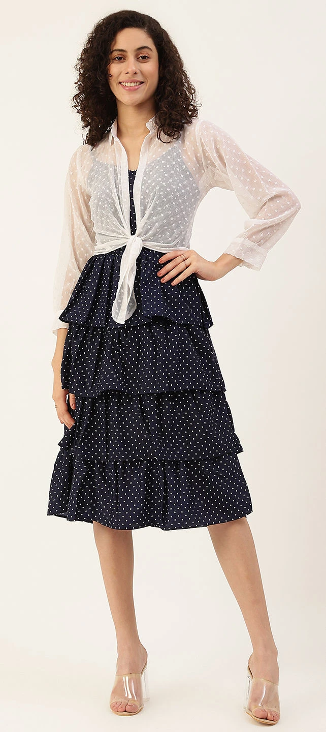 Blue color Dress in Wool Daffodil fabric with Printed work
